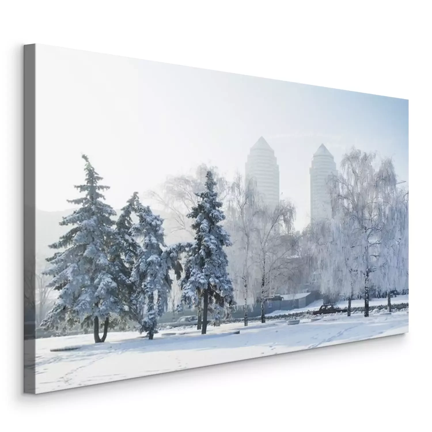 Tableau  A Winter scene in Dnipro. Winter city, frosty morning. Ukraine