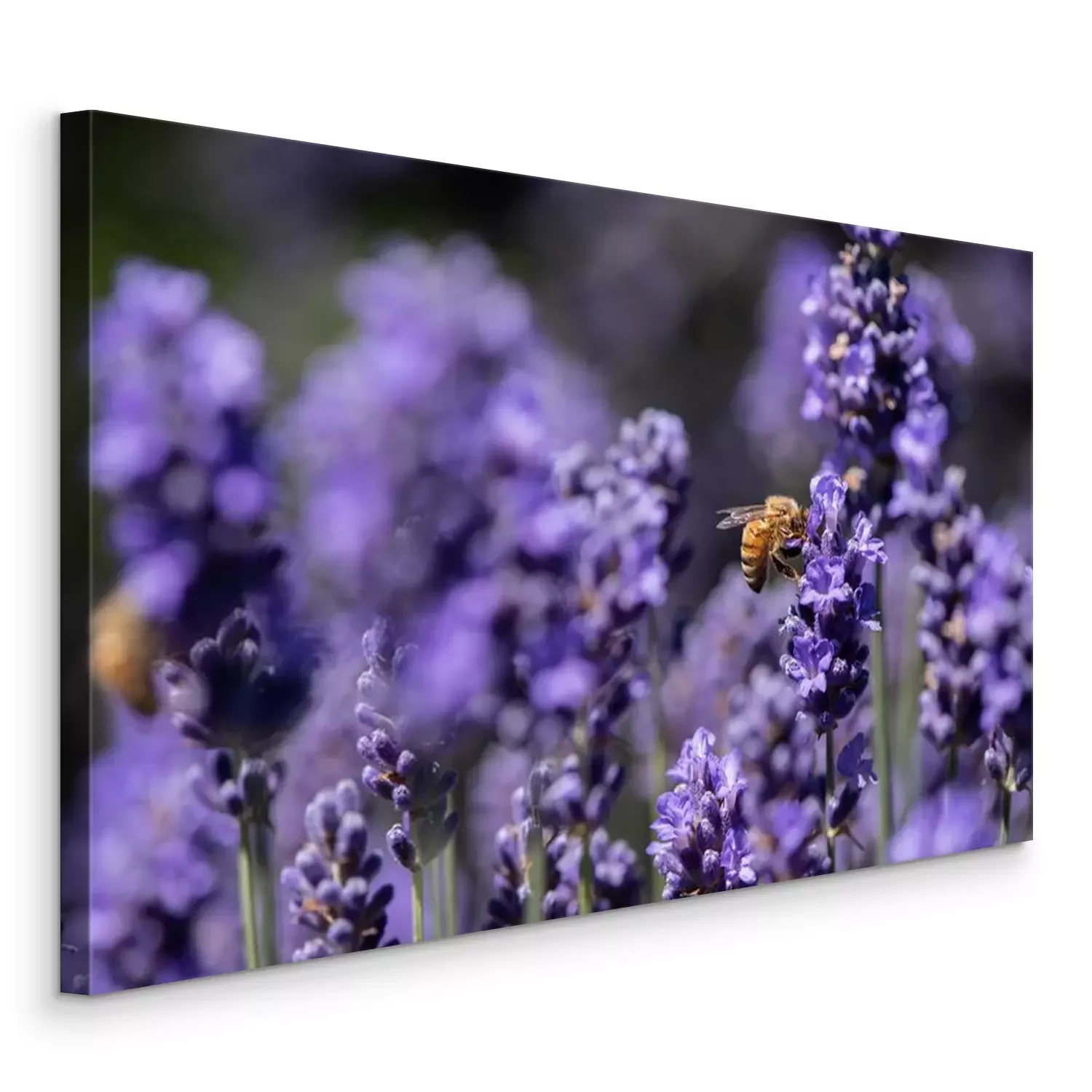 Tableau  Abeille à miel récoltant du pollen dans un champ de lavande
