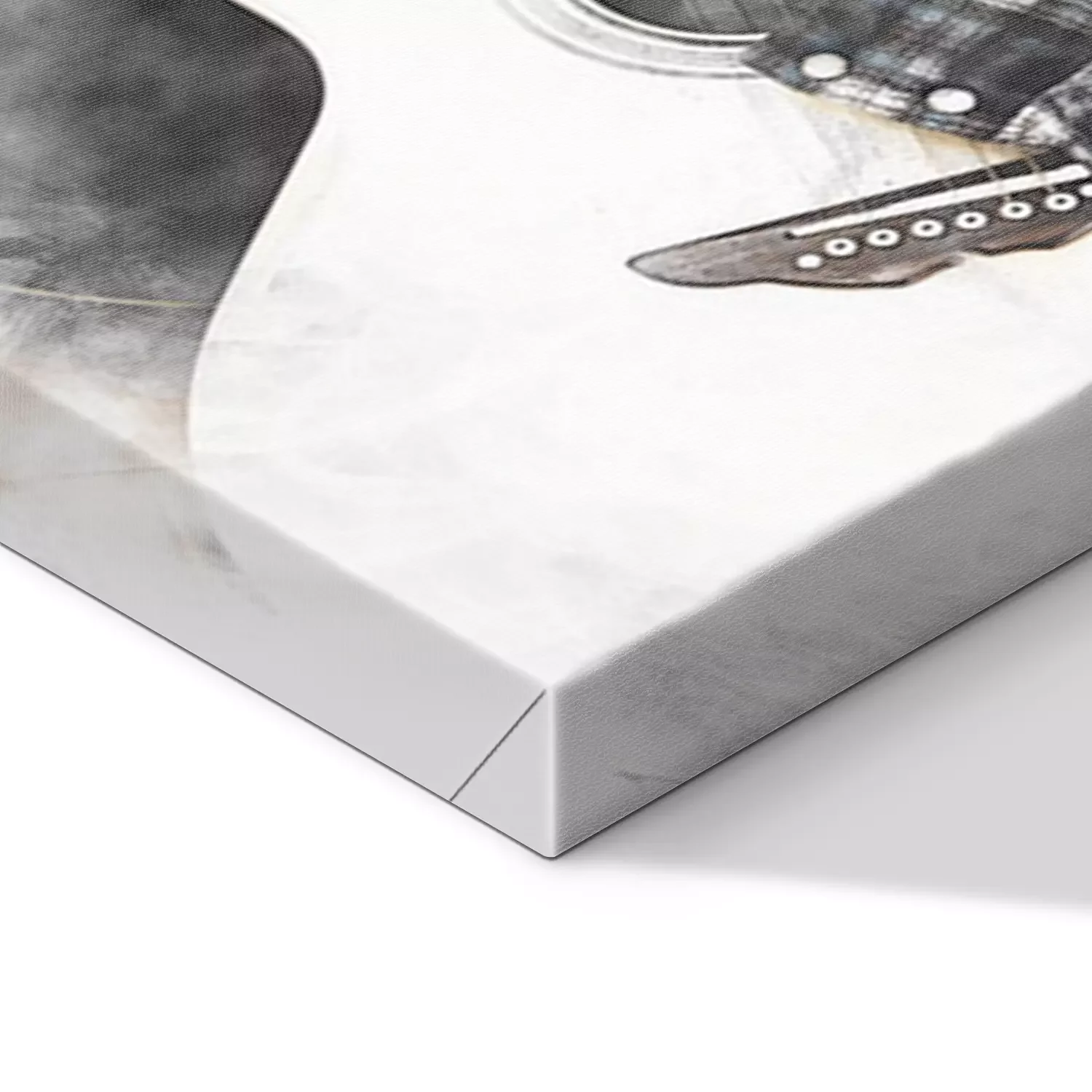 Tableau : Abstract beautiful man guitarist playing acoustic guitar in the foreground on Watercolor painting background and Digital illustration brush to art.
