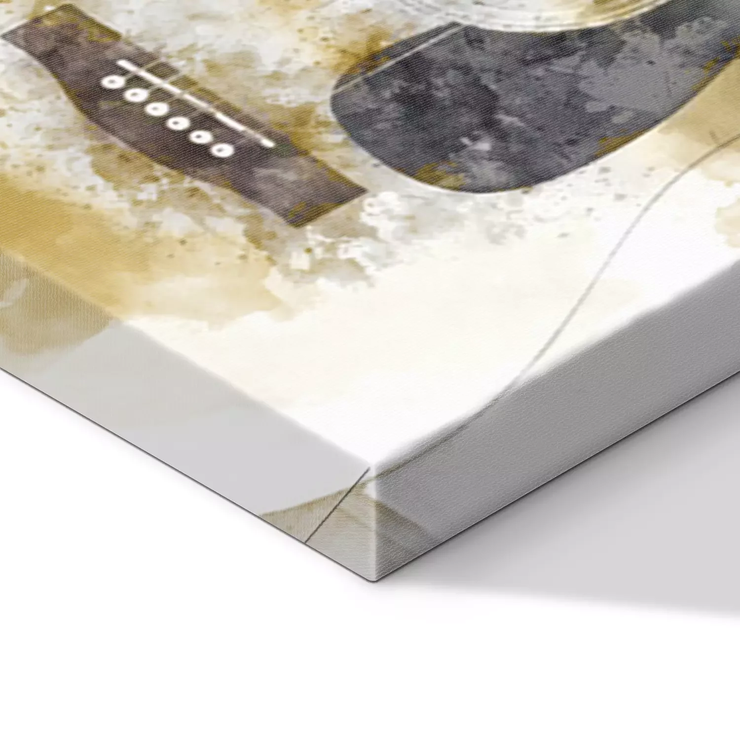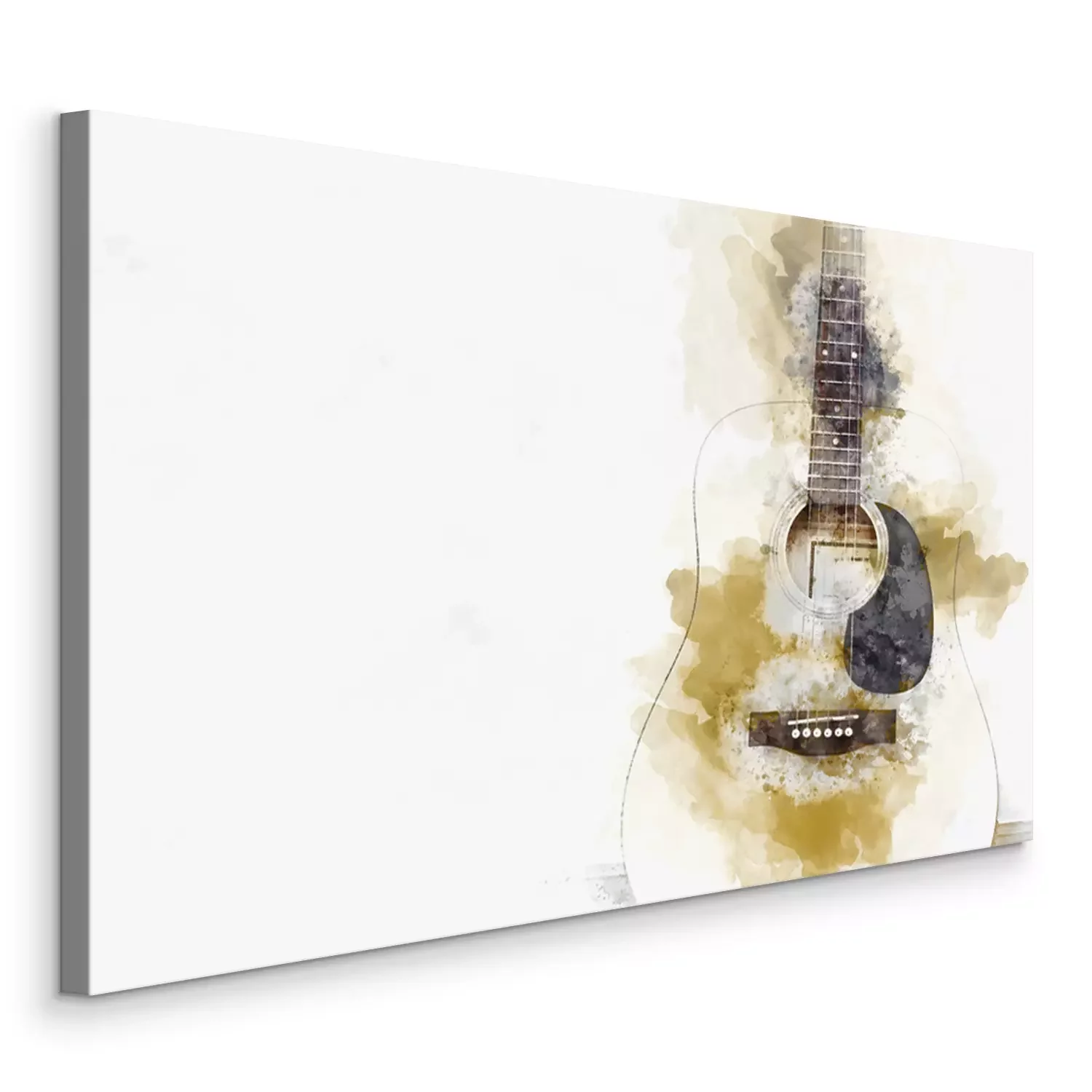 Tableau : Abstract colorful Acoustic Guitar in the foreground on Watercolor illustration painting background.