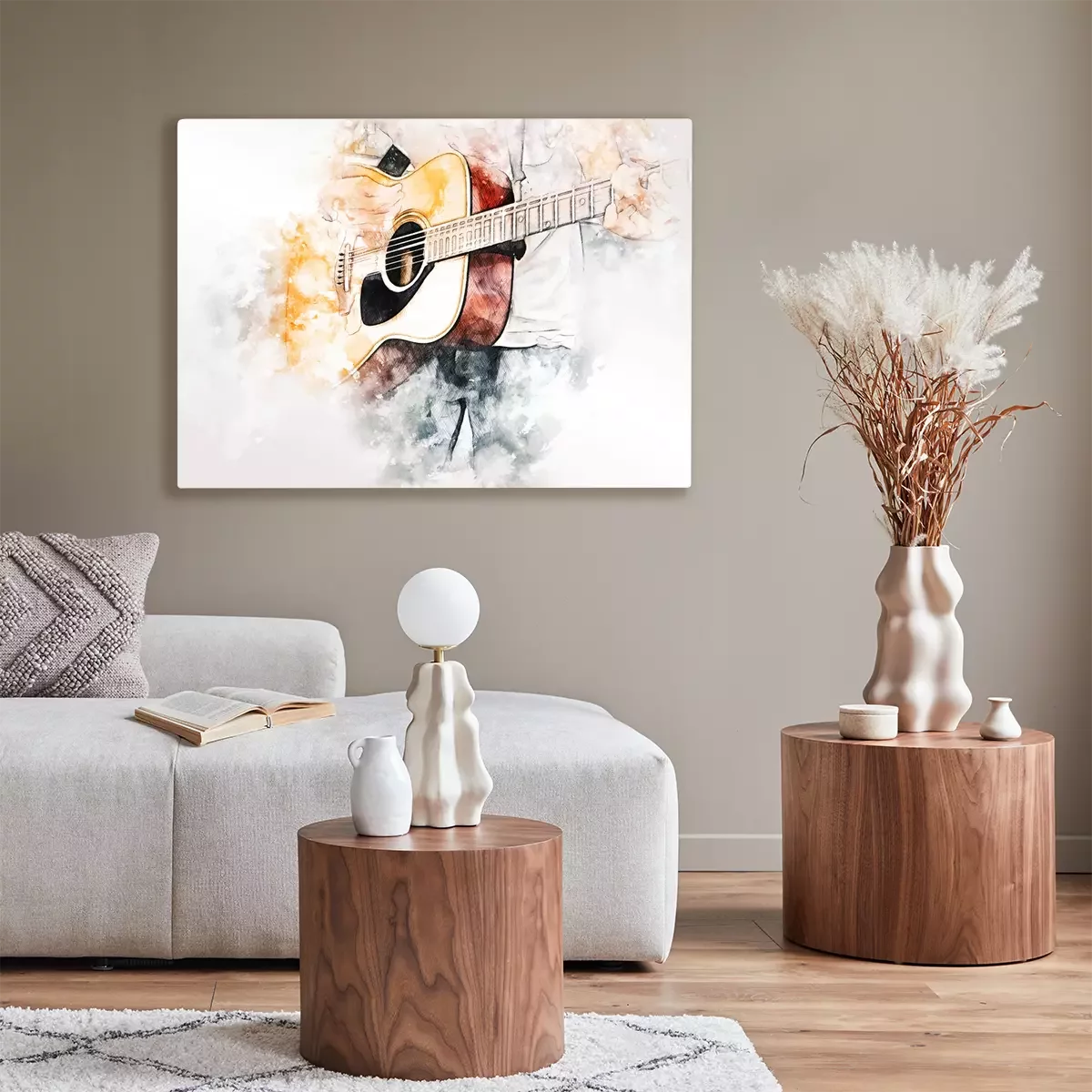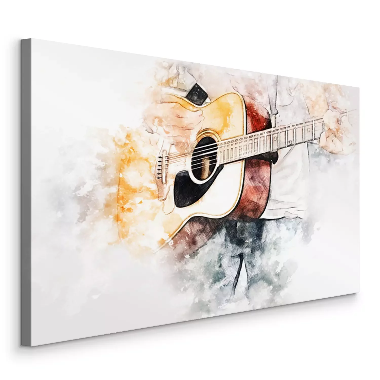 Tableau  Abstract colorful shape on playing acoustic guitar on watercolor illustration painting background.