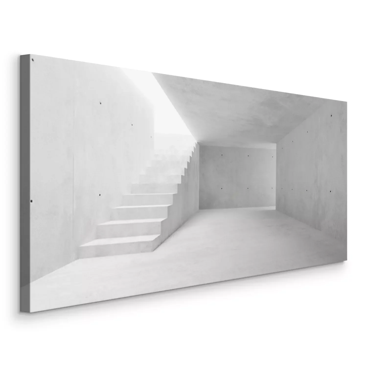 Tableau : Abstract empty, modern concrete walls room with stairs and indirect lit from above - industrial interior or gallery background template