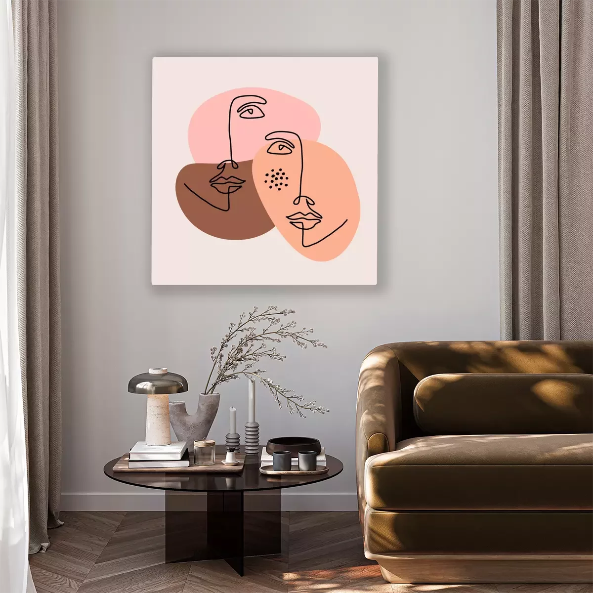 Tableau  Abstract line art face, modern contemporary minimalist woman portrait. Young girl hand drawn character. Vector abstract illustration.