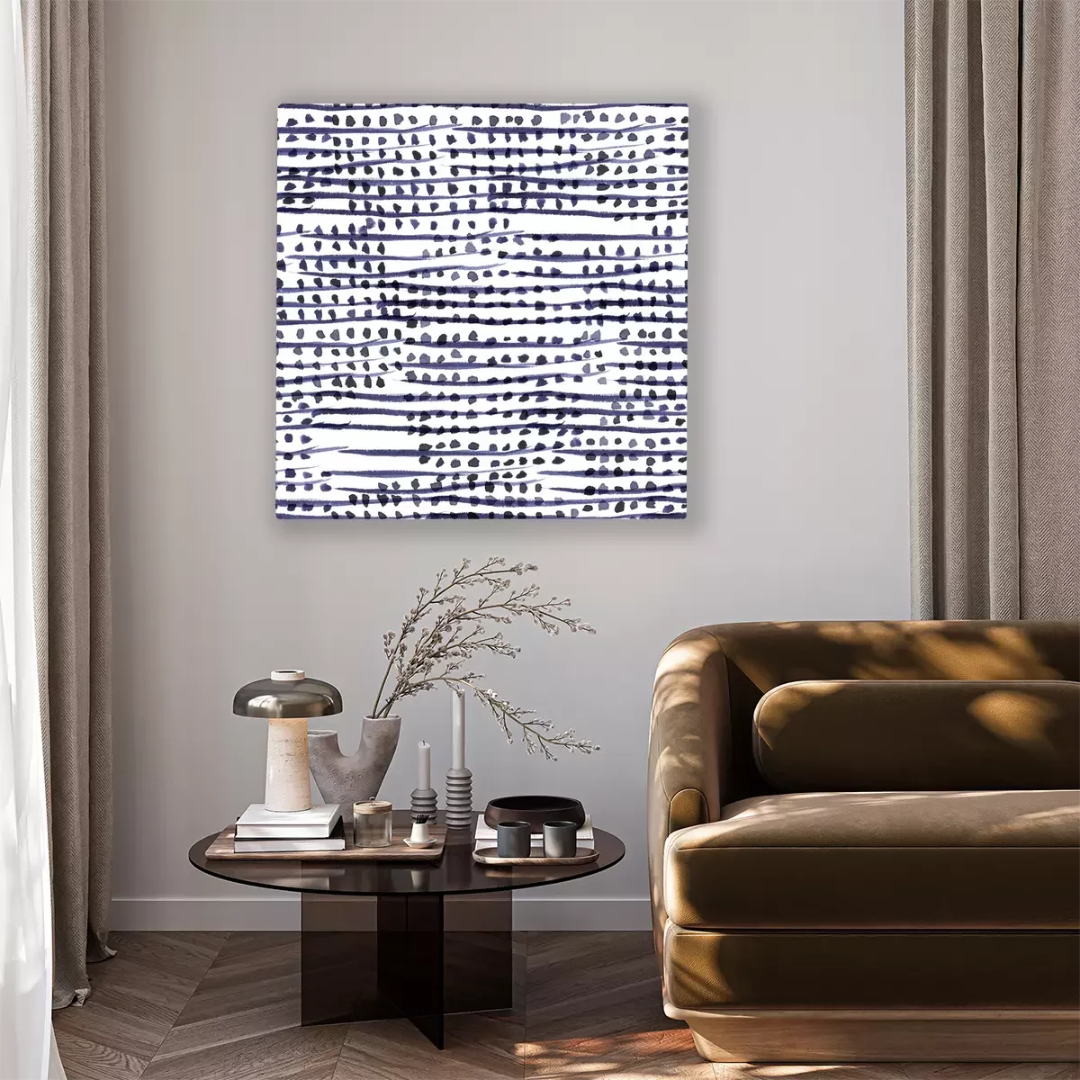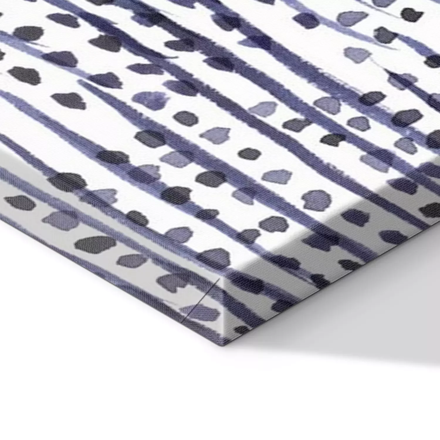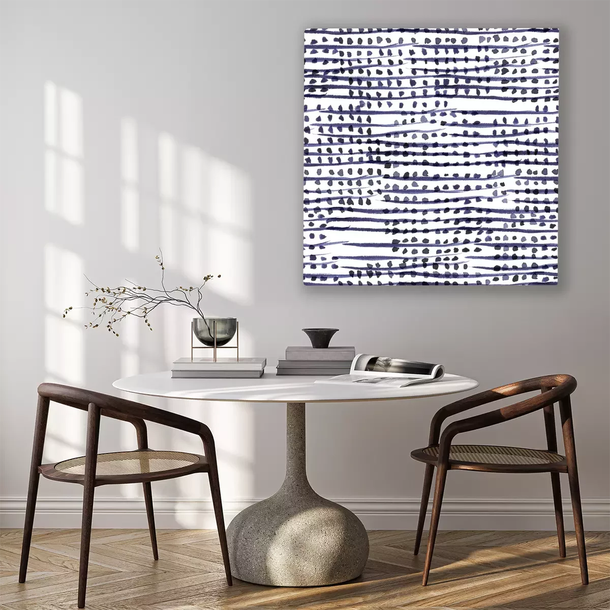 Tableau : Abstract navy blue stripes and dots. Seamless watercolor pattern