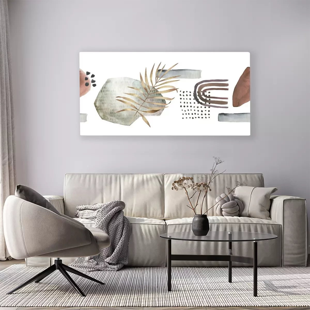 Tableau : Abstract nordic print with geometric elements. Watercolor seamless pattern. Hand drawn marble illustration. Mixed media border