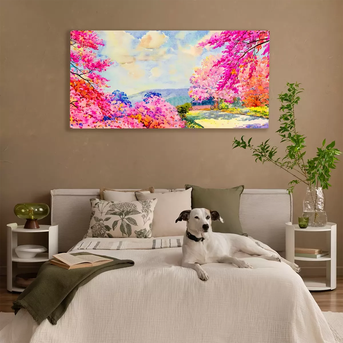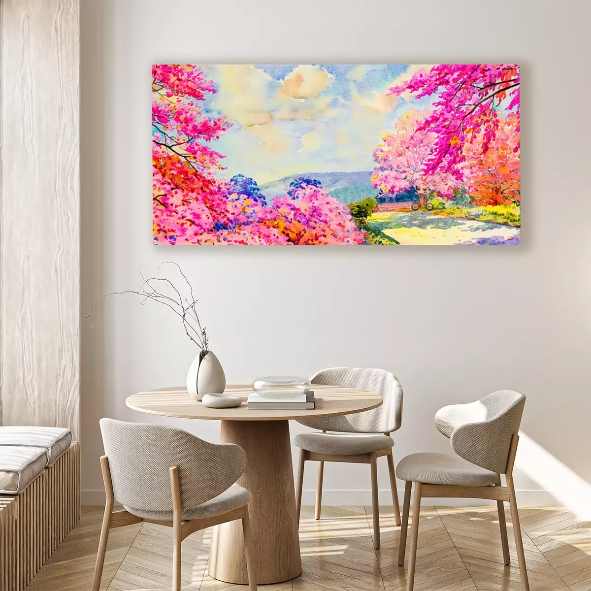 Tableau : Abstract watercolor landscape painting imagination colorful of beauty flowers
