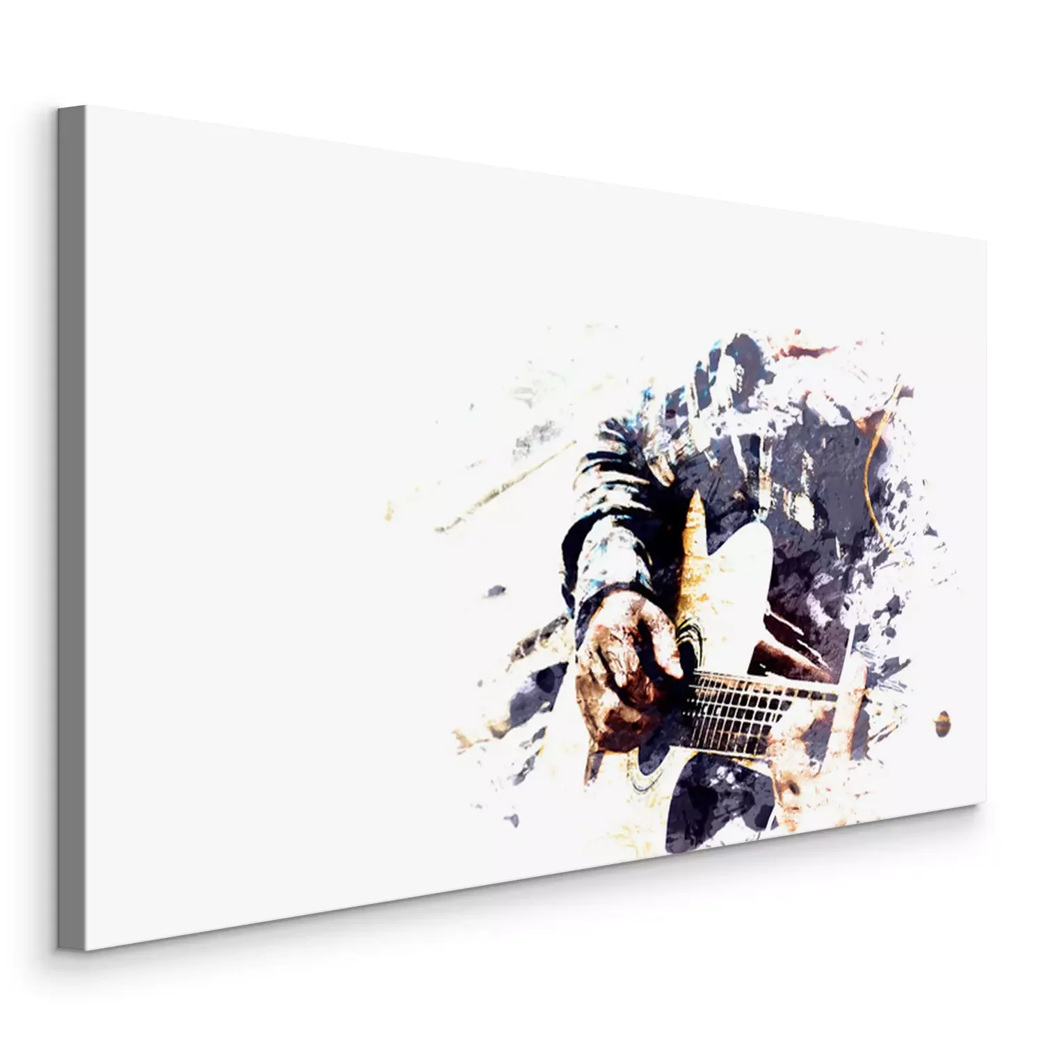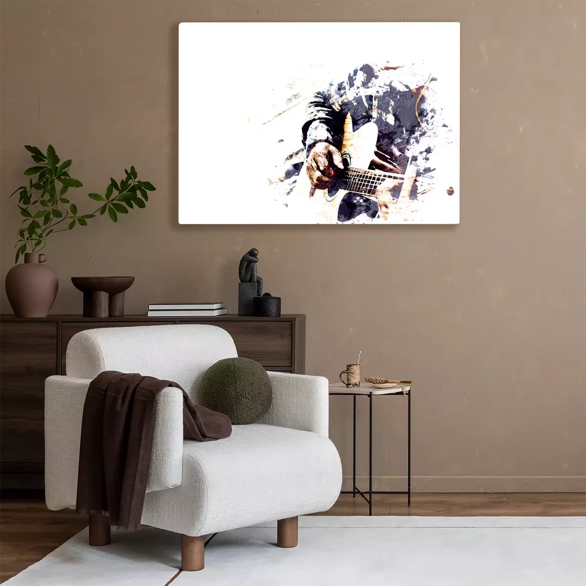 Tableau  Abstrait beau jeu de guitare acoustique au premier plan sur fond de peinture aquarelle et illustration numérique brosse à art.
