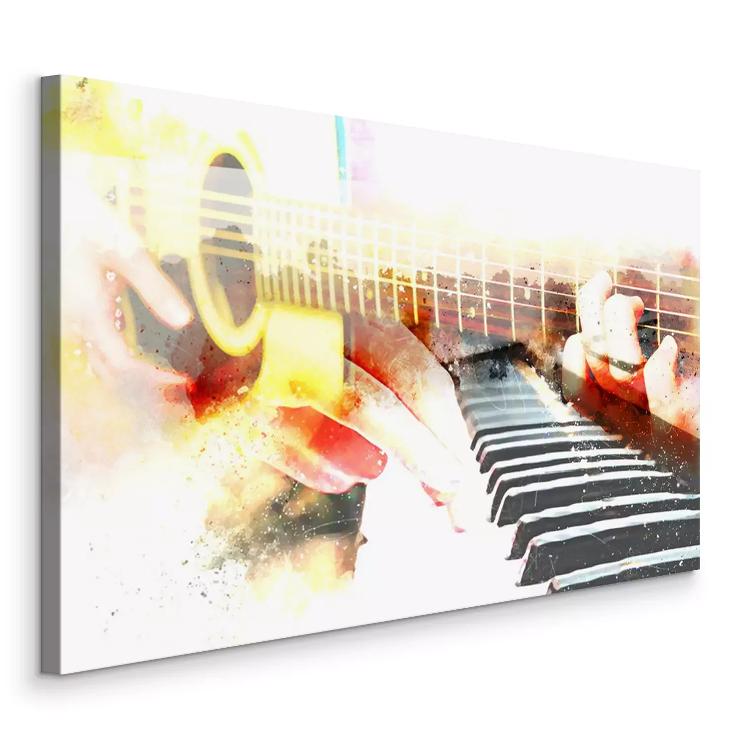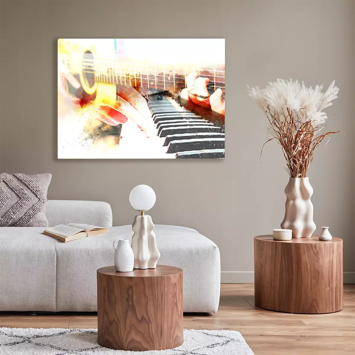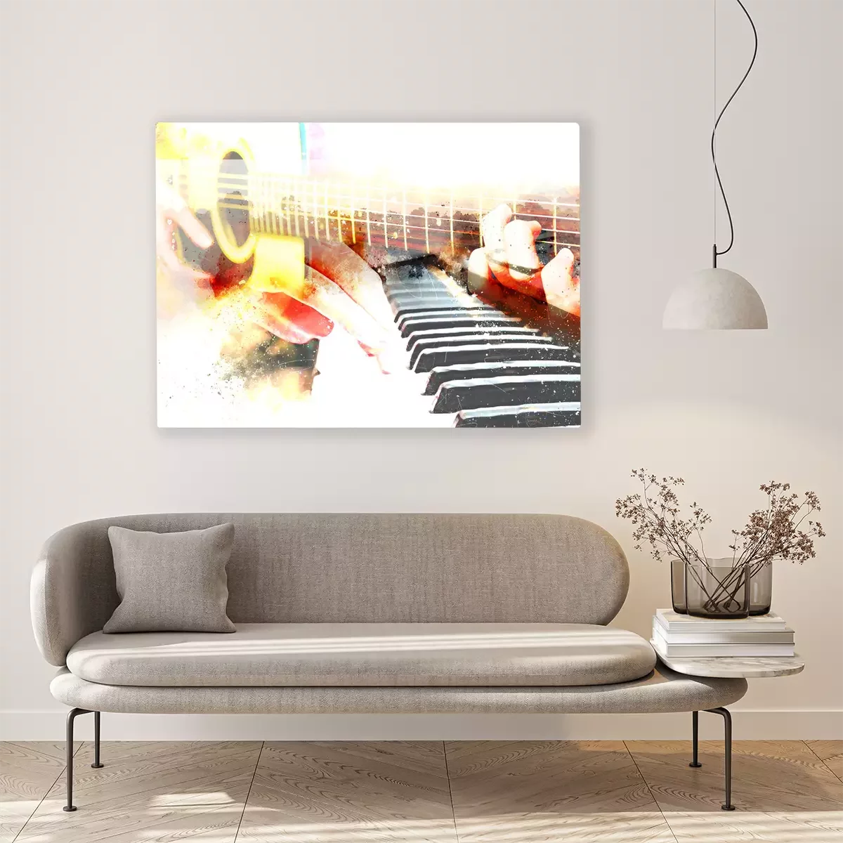 Tableau : Abstrait beau jeu de guitare acoustique et piano sur fond de peinture aquarelle et illustration numérique brosse à art.