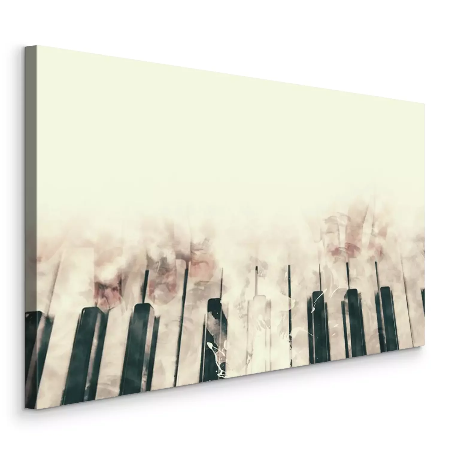 Tableau  Abstrait belle main jouant du clavier du piano au premier plan fond de peinture à l'aquarelle et brosse illustration numérique à l'art ..