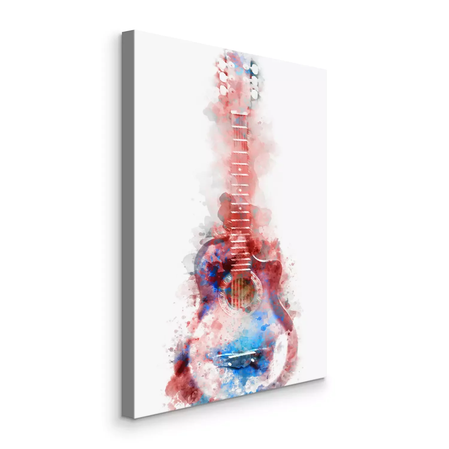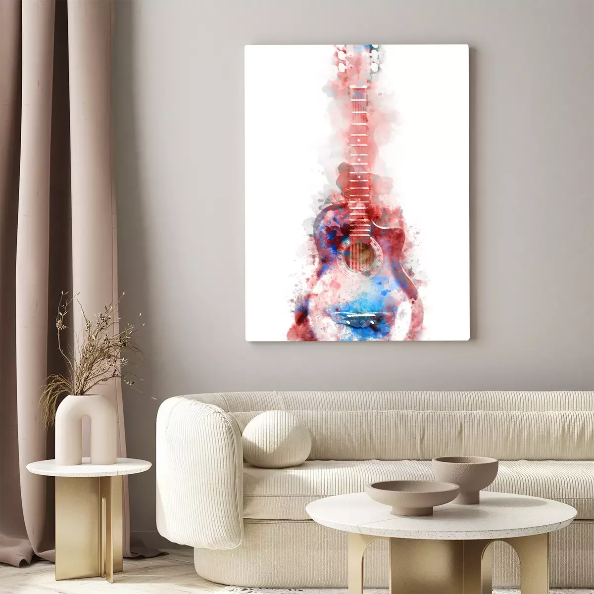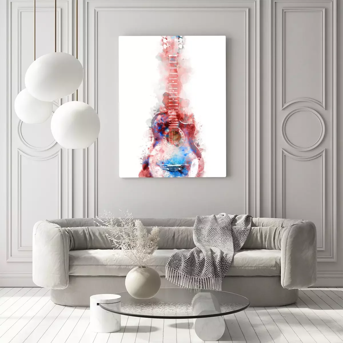 Tableau  Abstrait bleu guitare acoustique au premier plan gros plan sur fond de peinture aquarelle