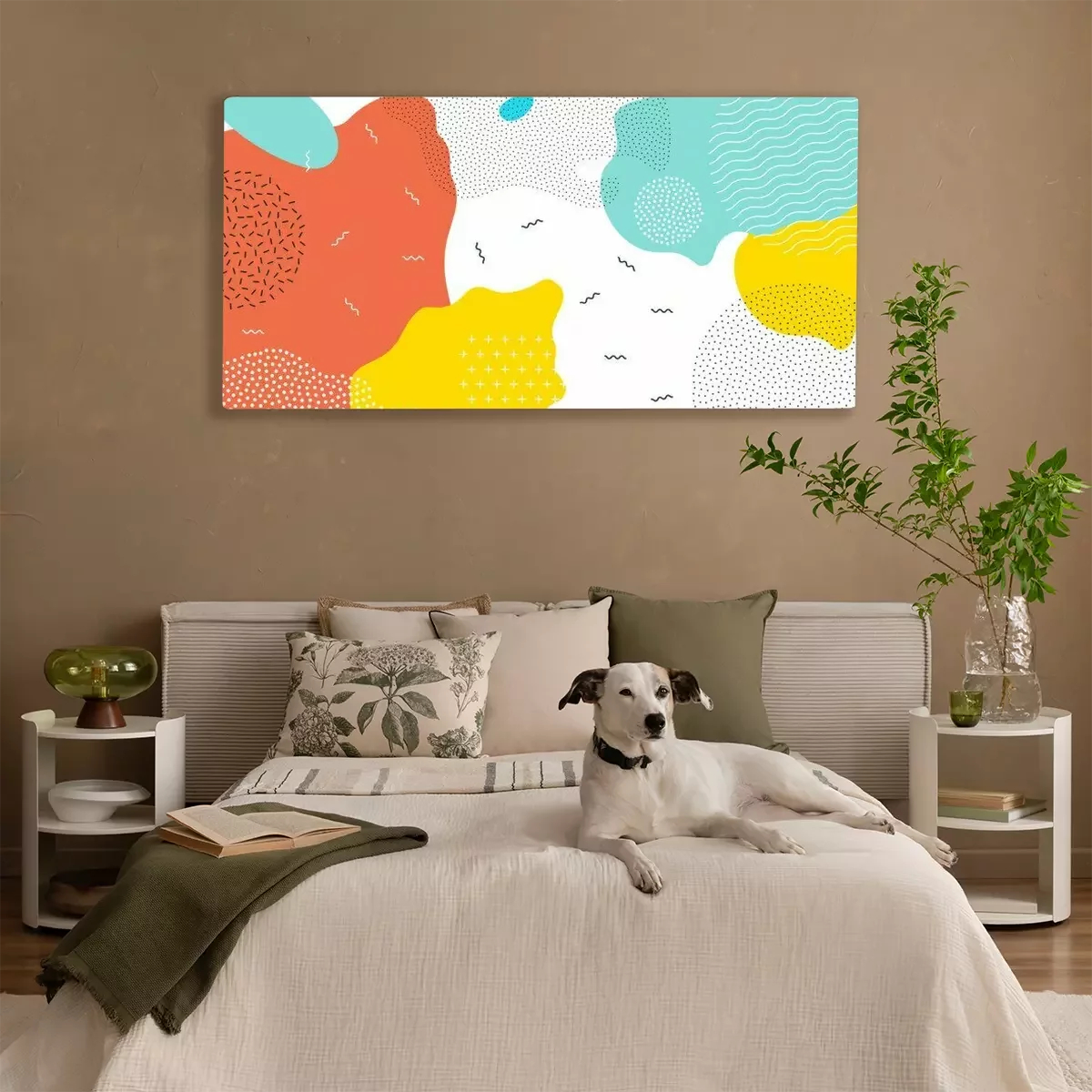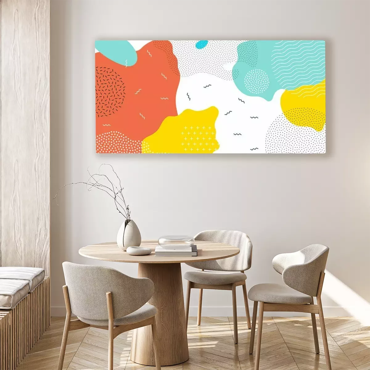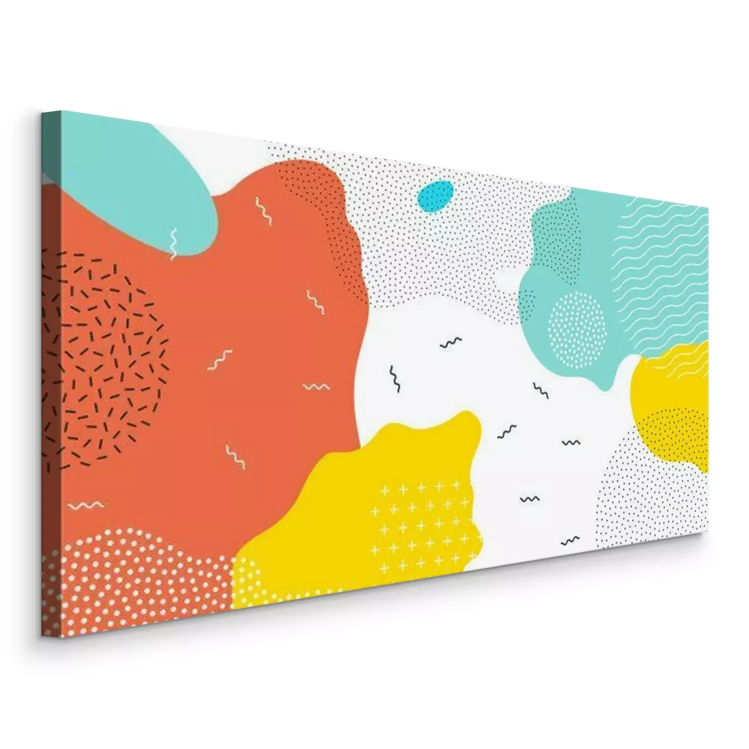 Tableau  Abstrait pop art couleur peinture splash de fond. Conception géométrique de superposition de vecteur de style branché de Memphis des années 80-90