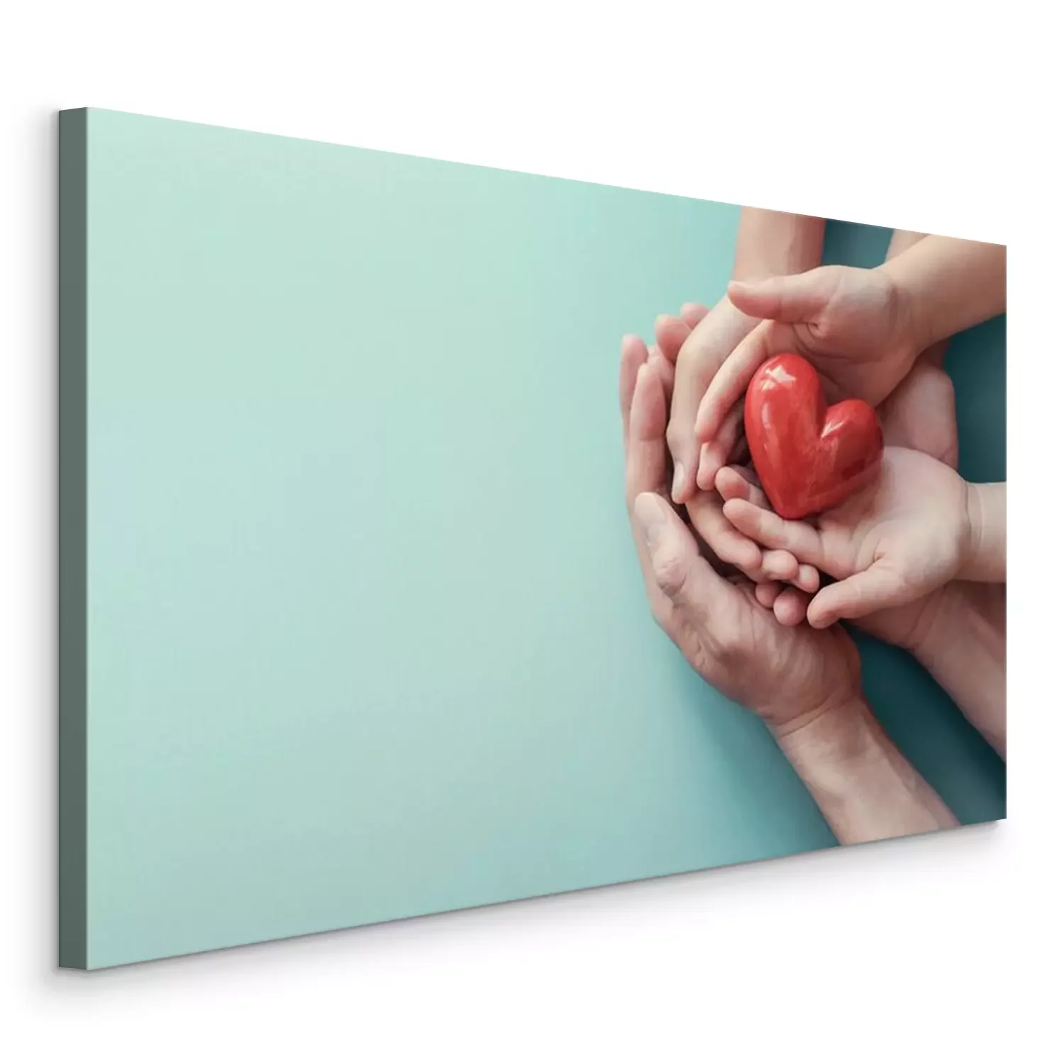 Tableau : adult and child hands holding red heart on aqua background, heart health, donation, CSR concept, world heart day, world health day, family day