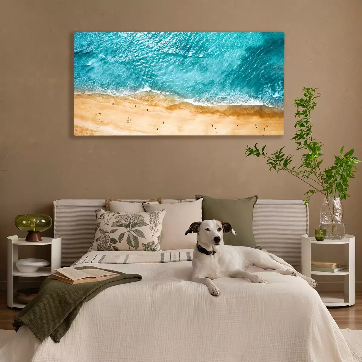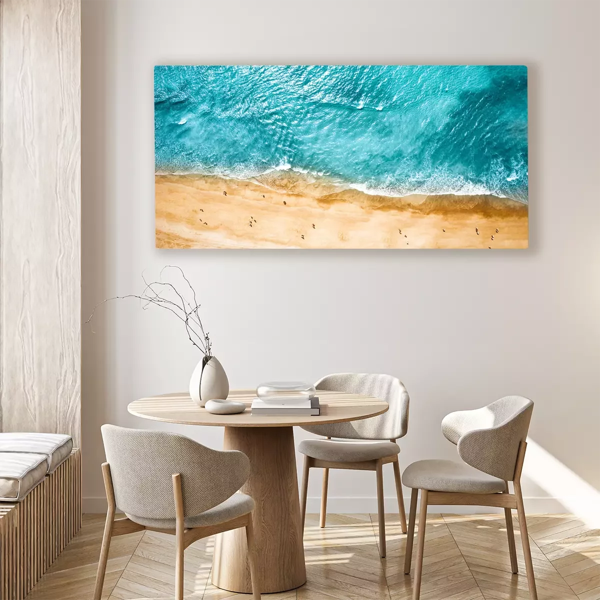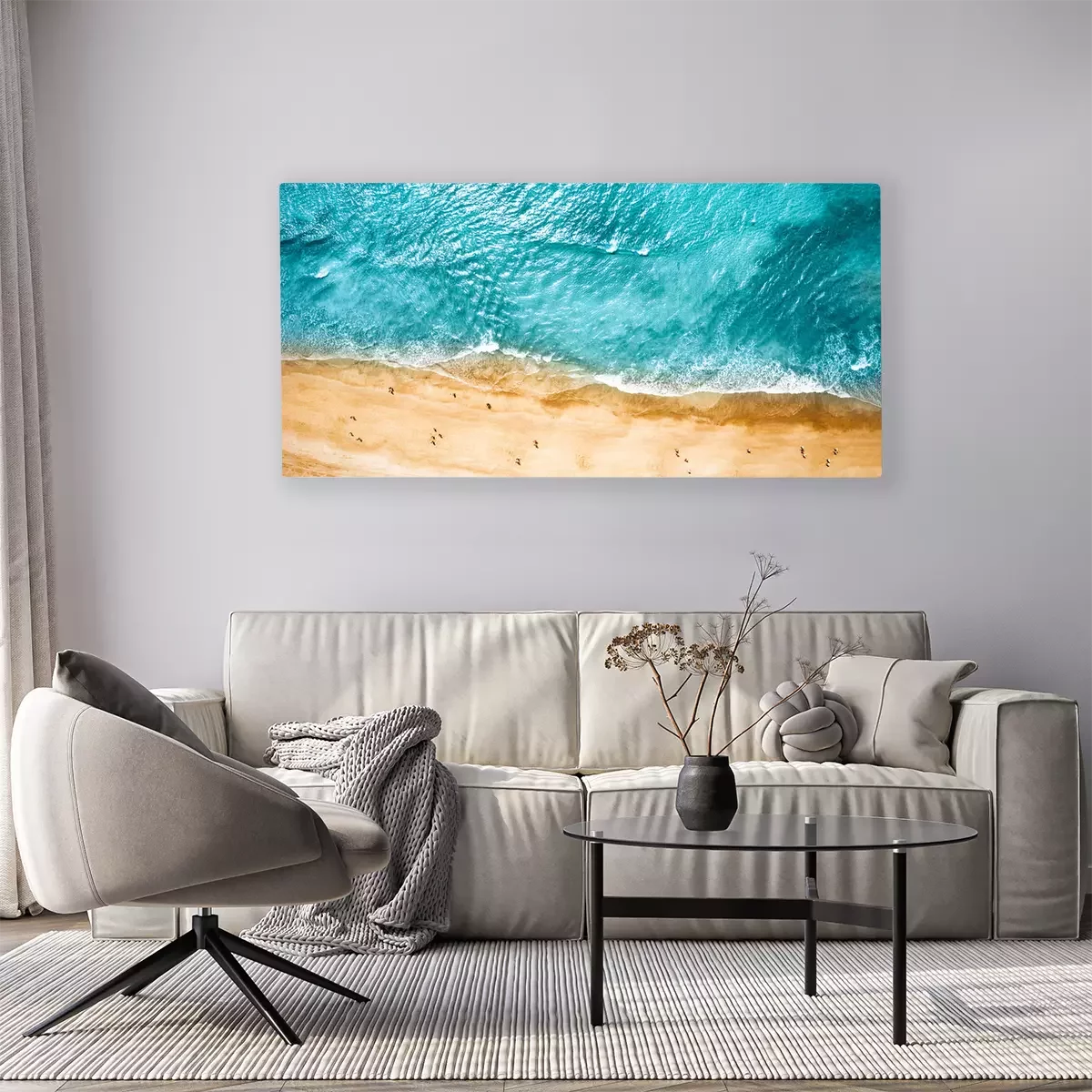 Tableau : Aerial photo of summer beach and blue ocean with sky.