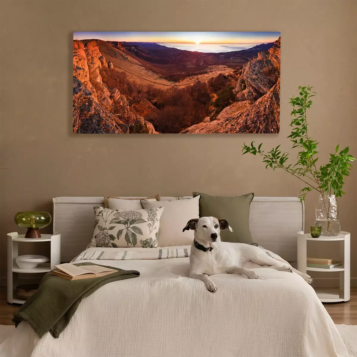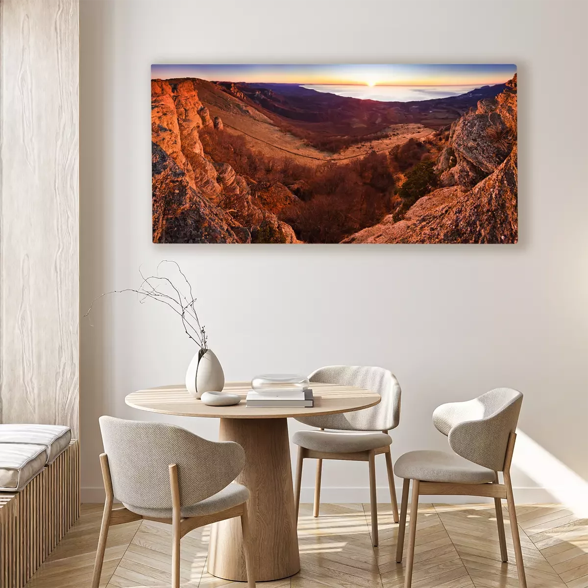 Tableau : aerial view of mountain hills and sunrise above the sea