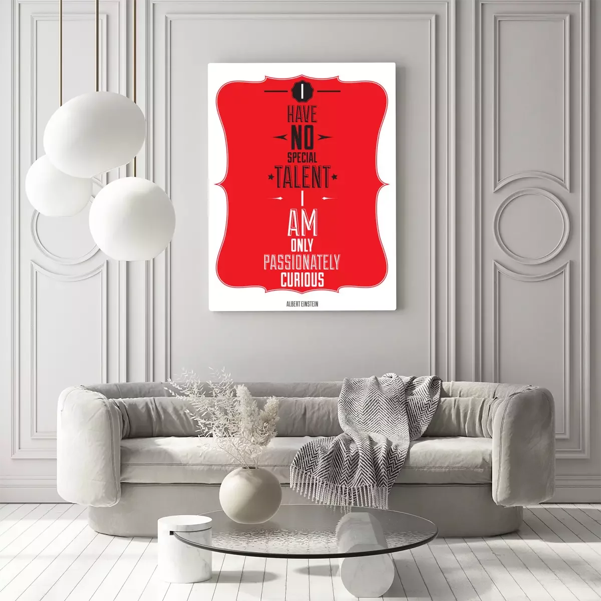 Tableau  Affiche. Je n'ai pas de talent particulier je suis seulement passionnément curieux.