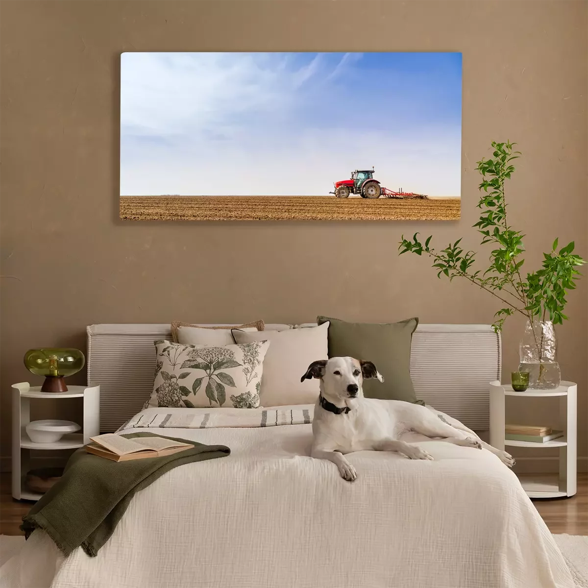 Tableau  Agriculteur, tracteur, préparer, terre, cultivateur