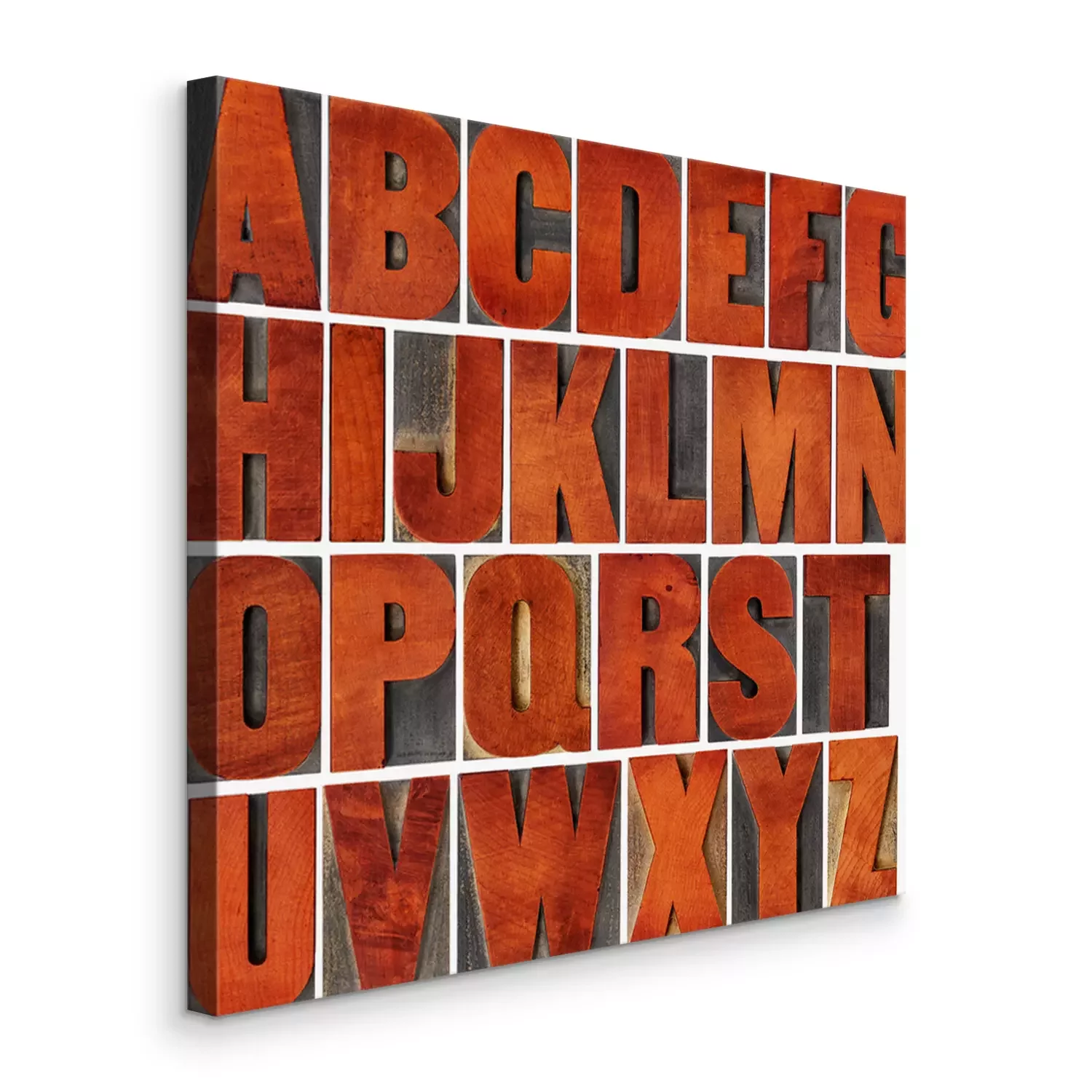 Tableau : Alphabet, ensemble, letterpress, bois, type