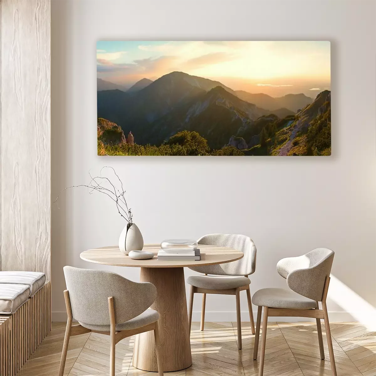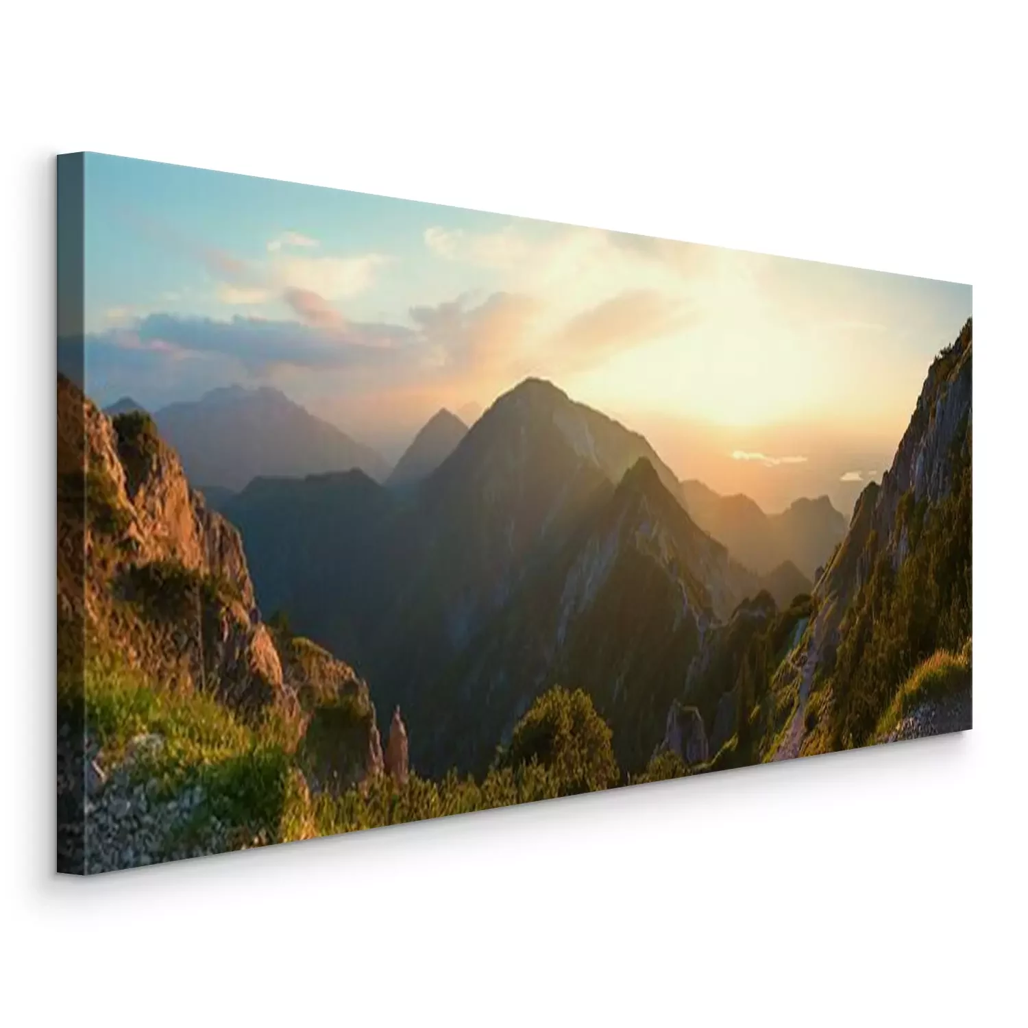 Tableau : Alpine landscape panorama in the evening, herzogstand mountain