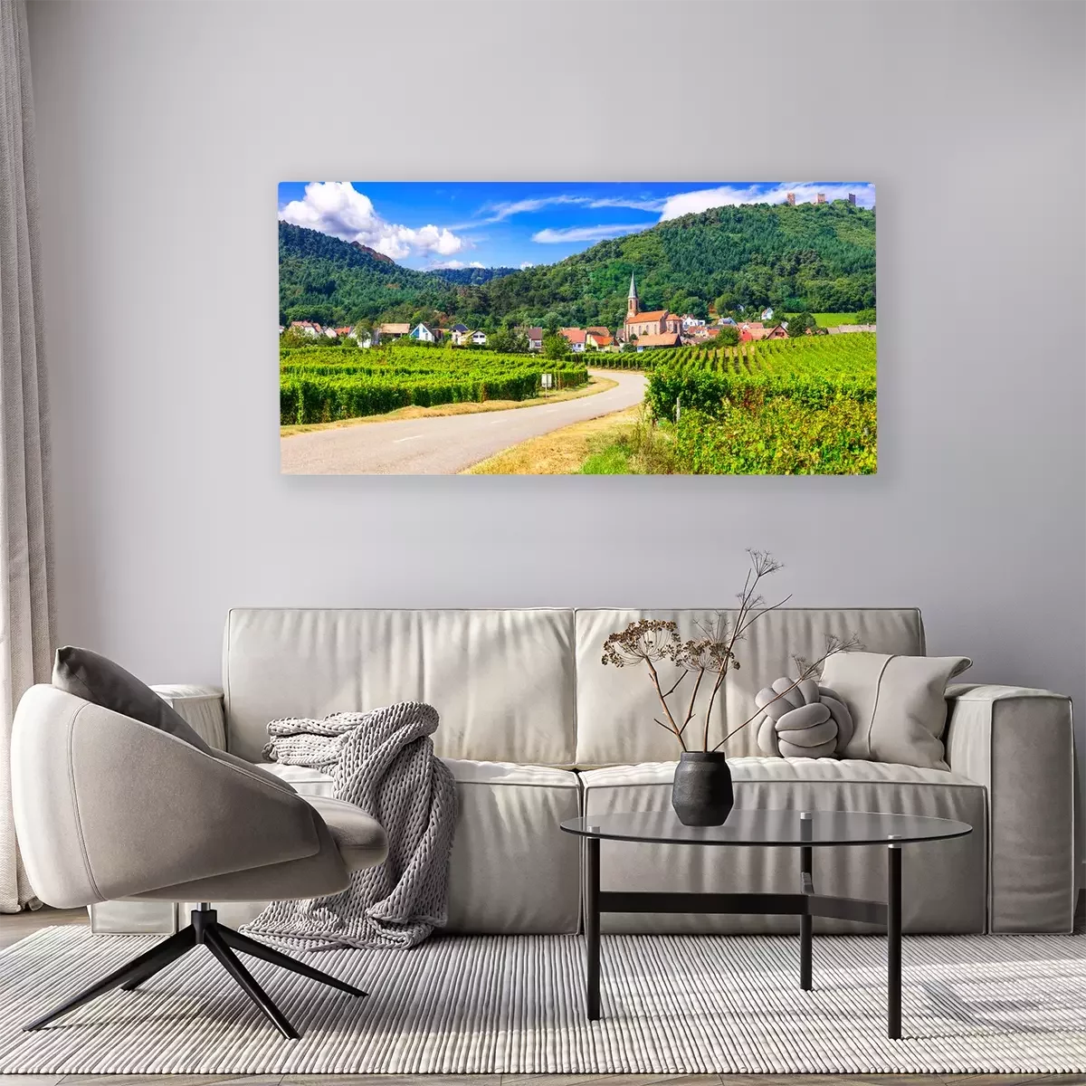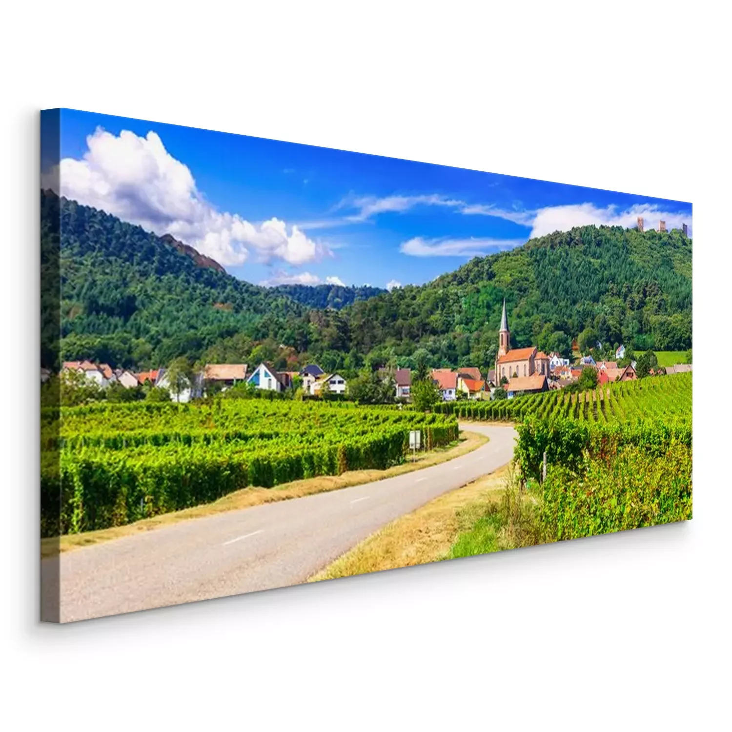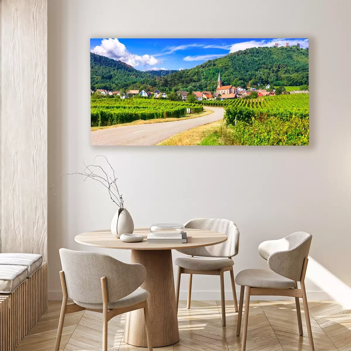 Tableau  Alsace region of France - famous "Vine route" . beautiful vineyards and traditional vilage Husseren les chateaux