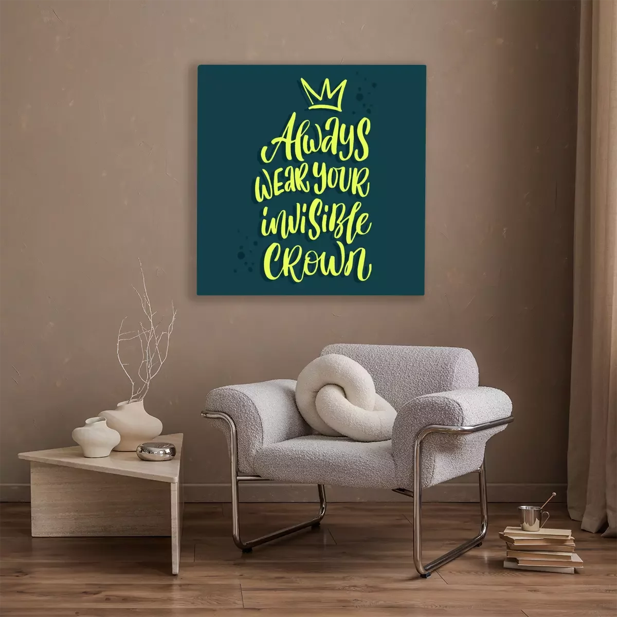 Tableau : Always wear your invisible crown quote hand drawn vector lettering. Doodle lifestyle phrase, slogan illustration. Leave comfort zone. Inspirational, motivational poster, banner