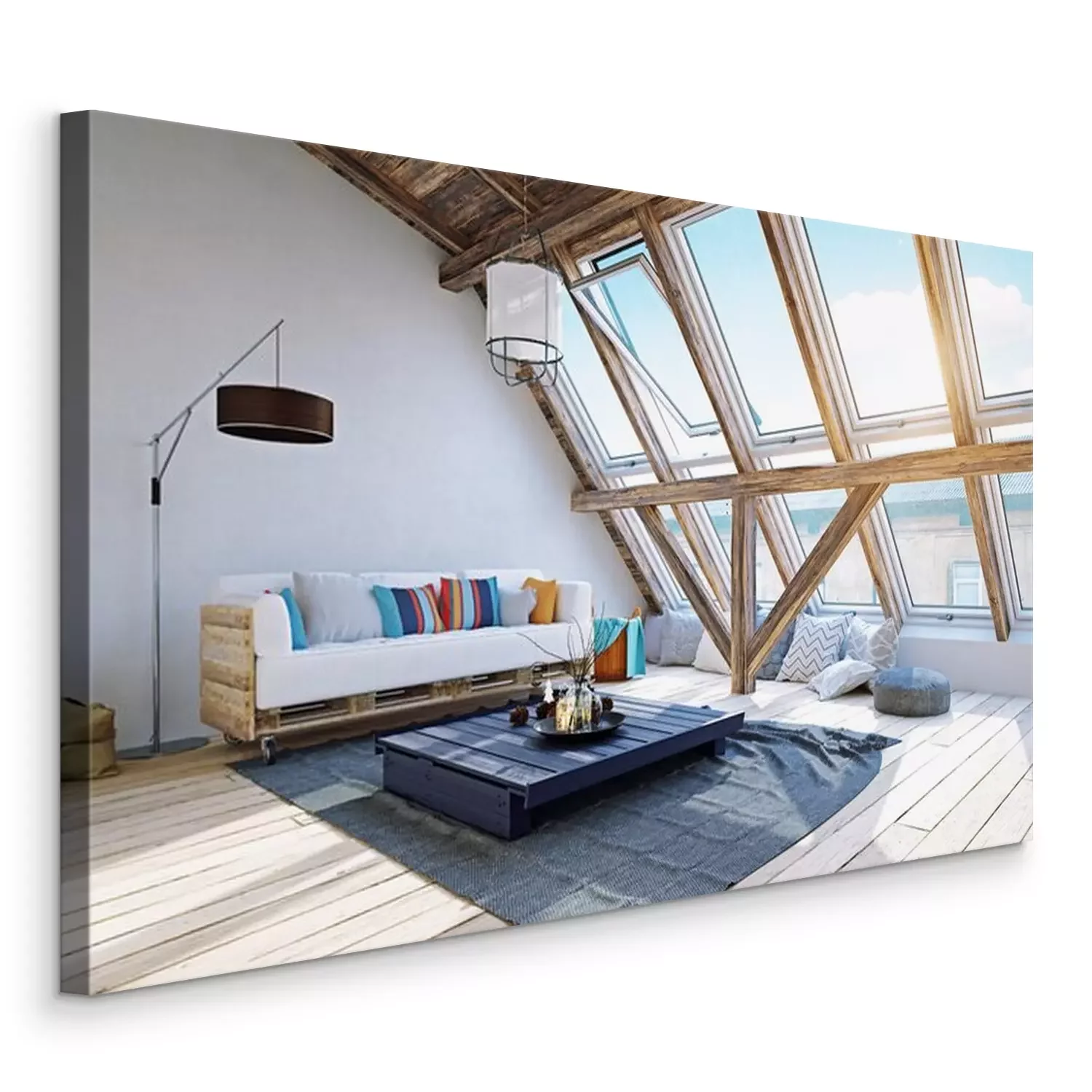 Tableau  aménagement de grenier moderne. Concept de rendu 3d