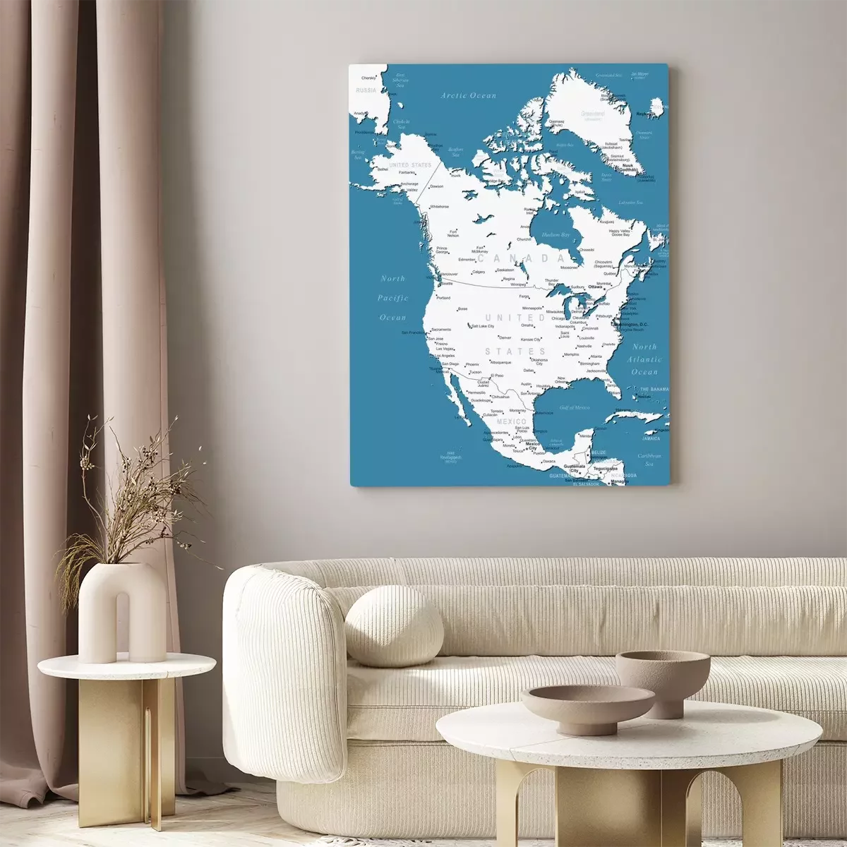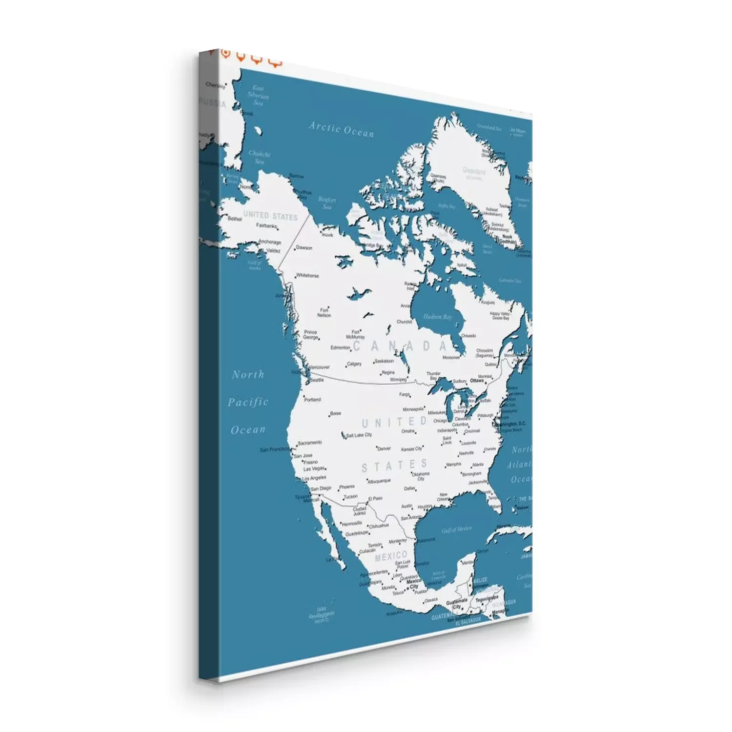 Tableau  Amérique du Nord carte - très détaillées illustration vectorielle. Image contient contours terrestres, les noms de pays et de la terre, les noms de ville, les noms d'objets de l'eau, des icônes de nav