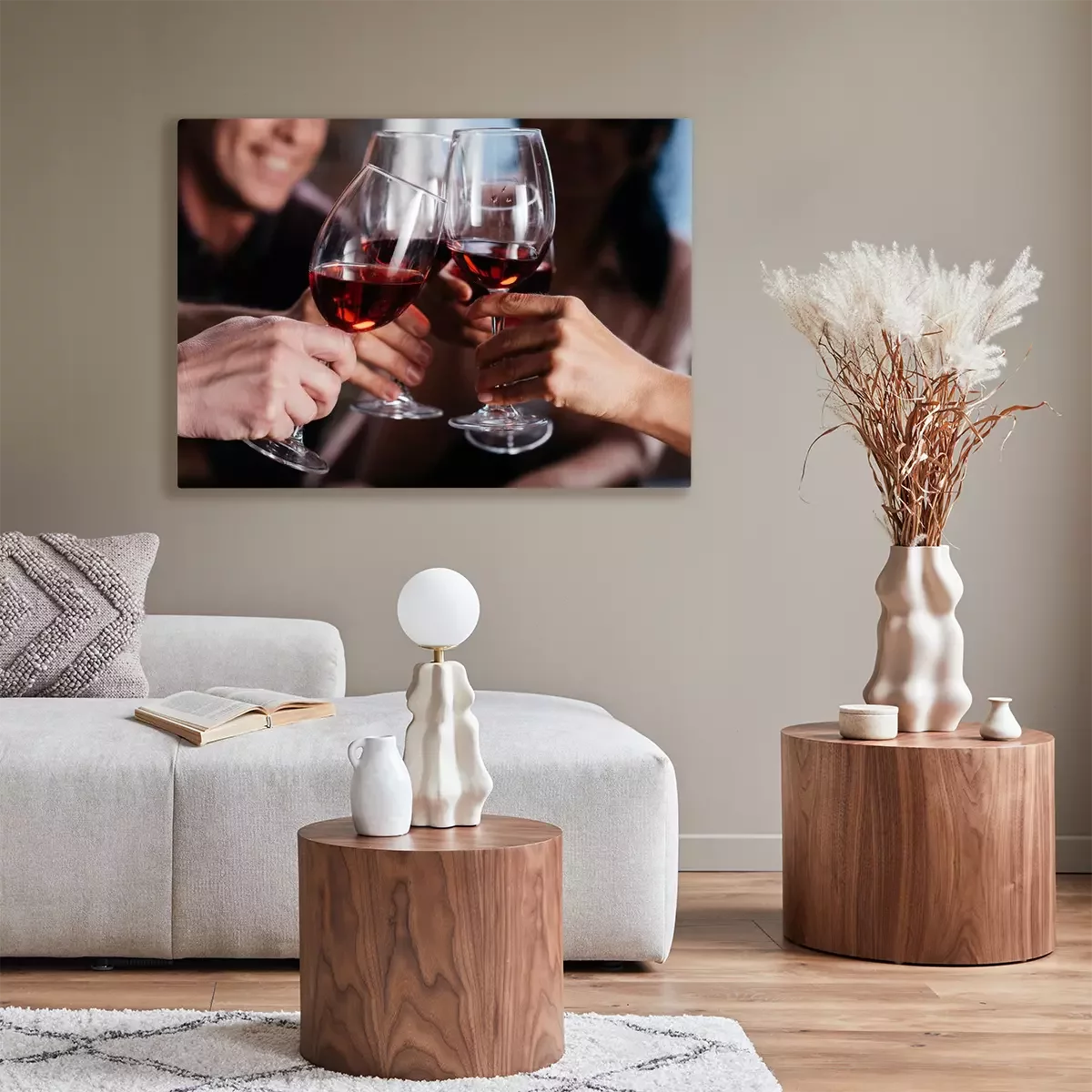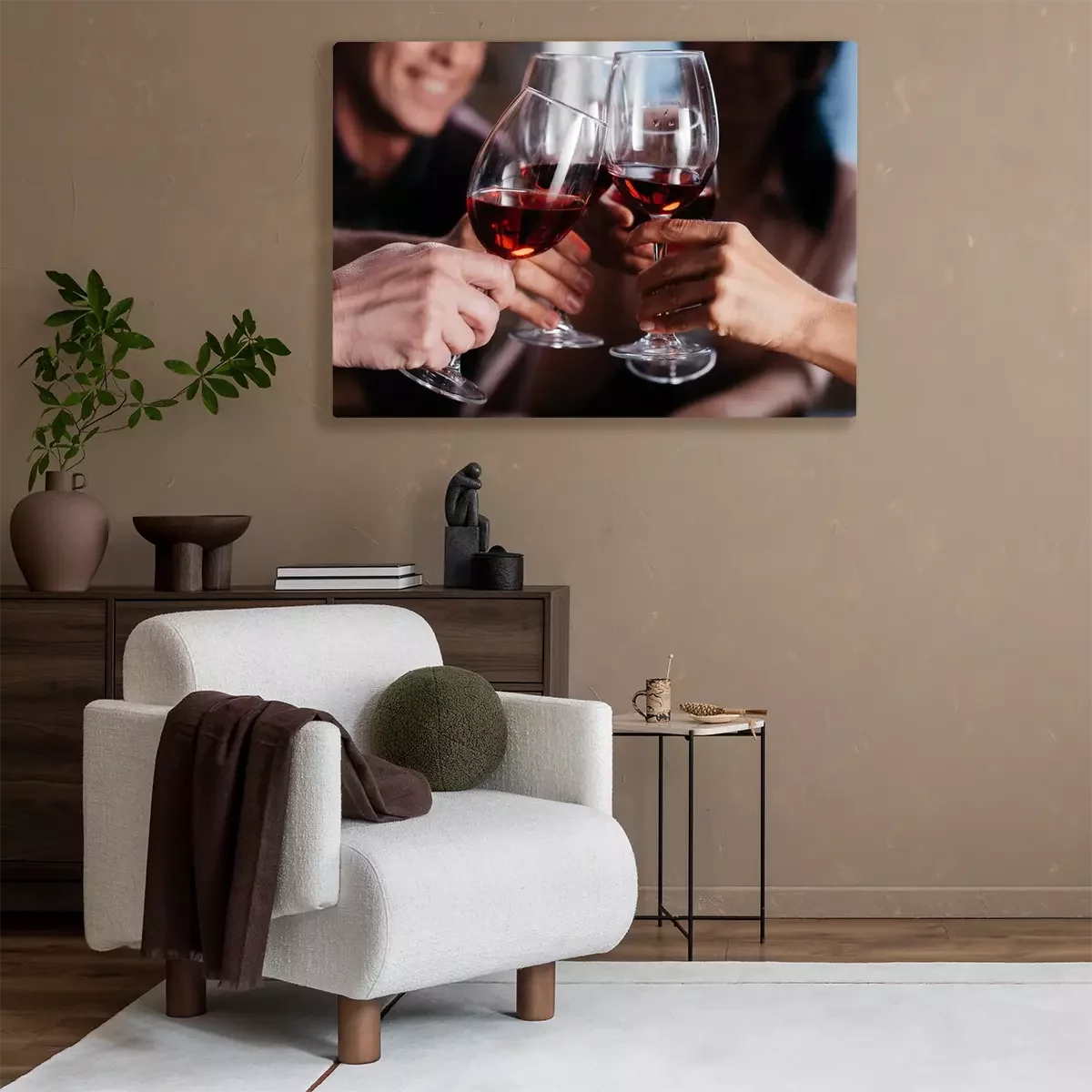 Tableau : amis buvant du vin rouge