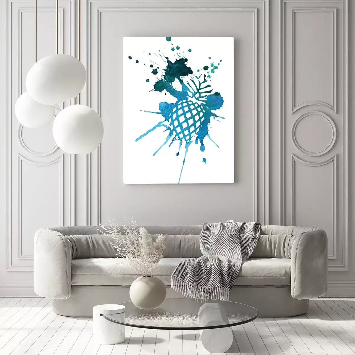 Ananas aquarelle avec des éclaboussures turquoise