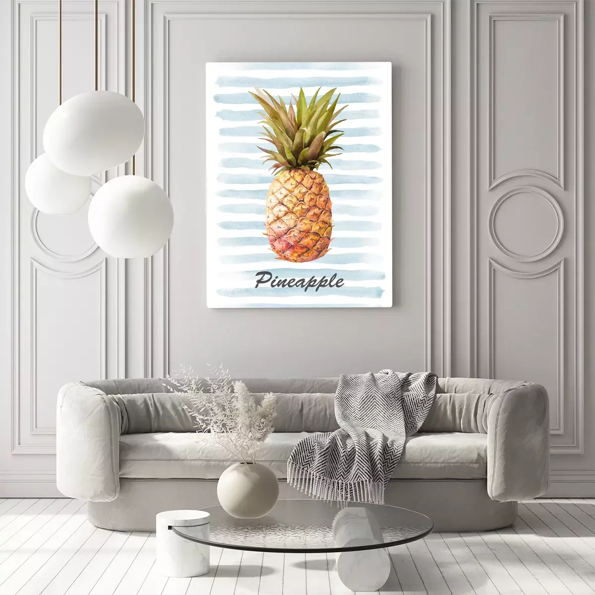 Ananas sur fond bleu à rayures