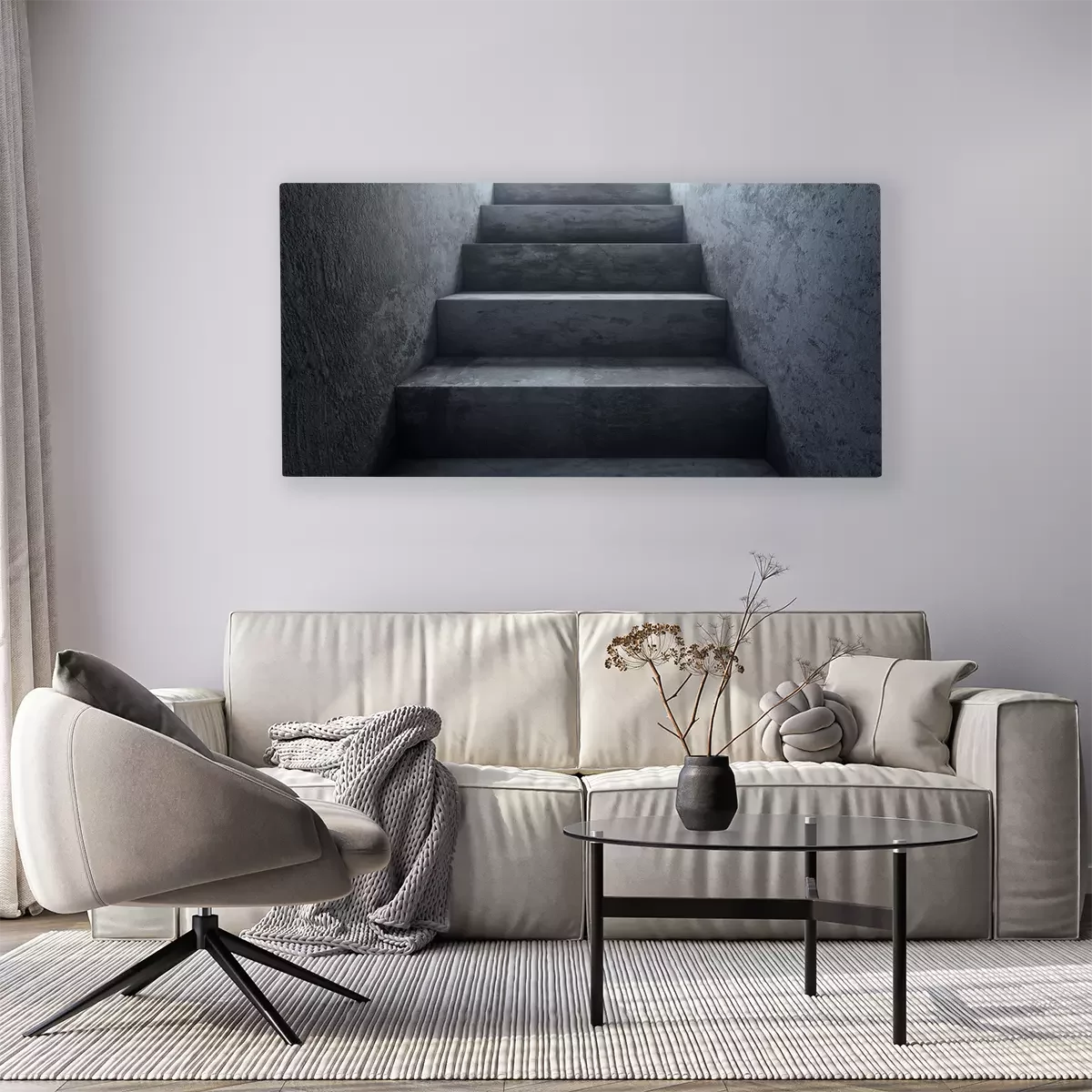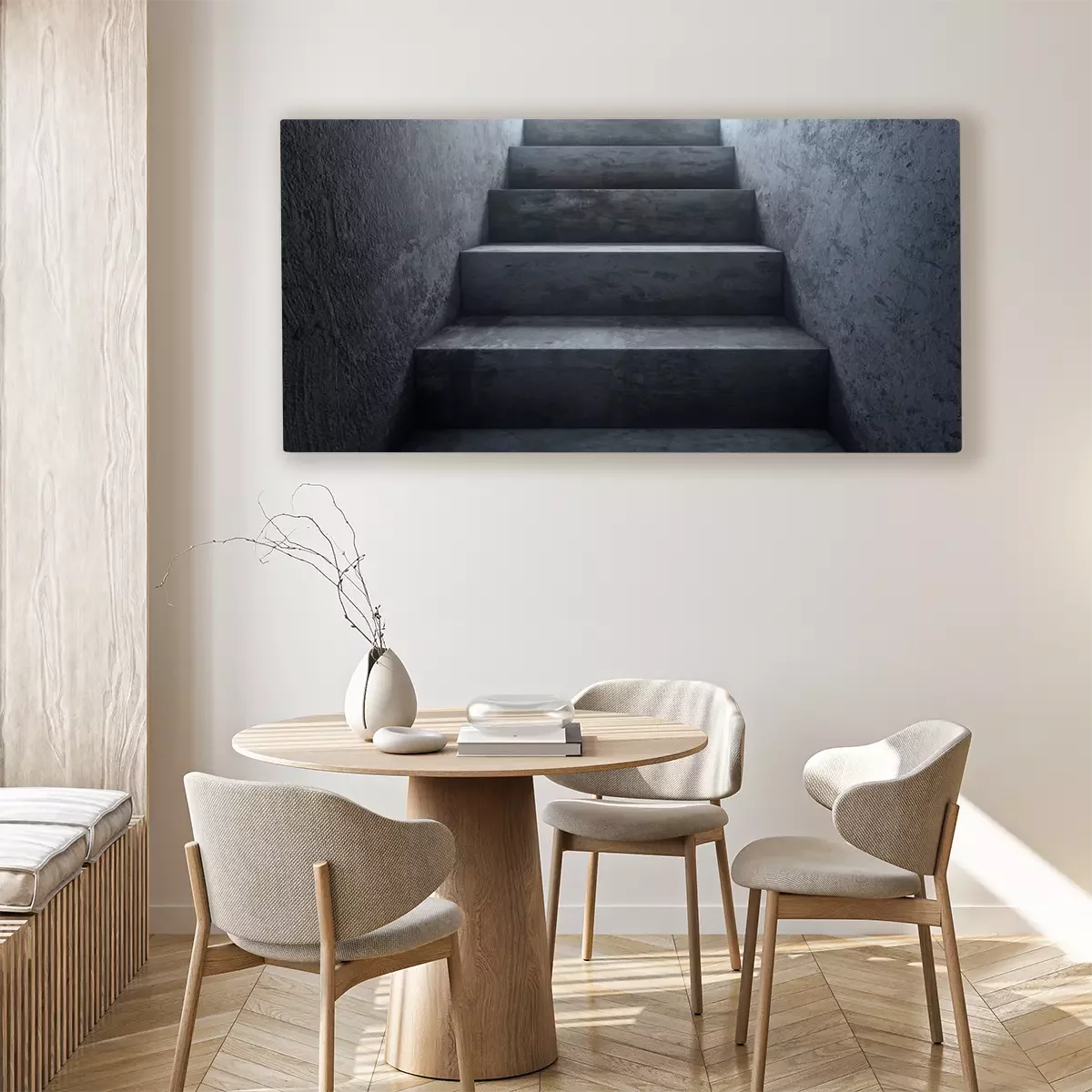 Tableau  Ancien escalier en béton sale à la lumière. Le chemin du succès. Rendu 3D