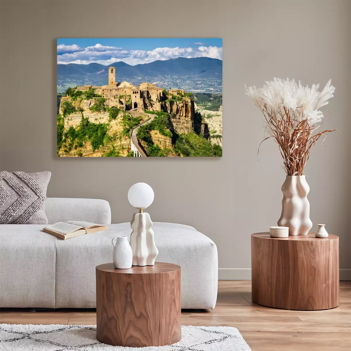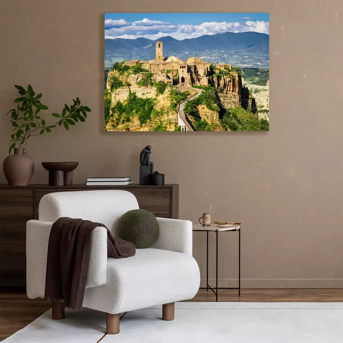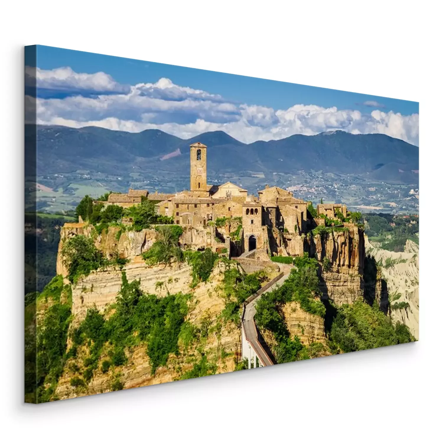 Tableau  Ancienne ville sur la colline en Toscane sur un fond de montagnes.