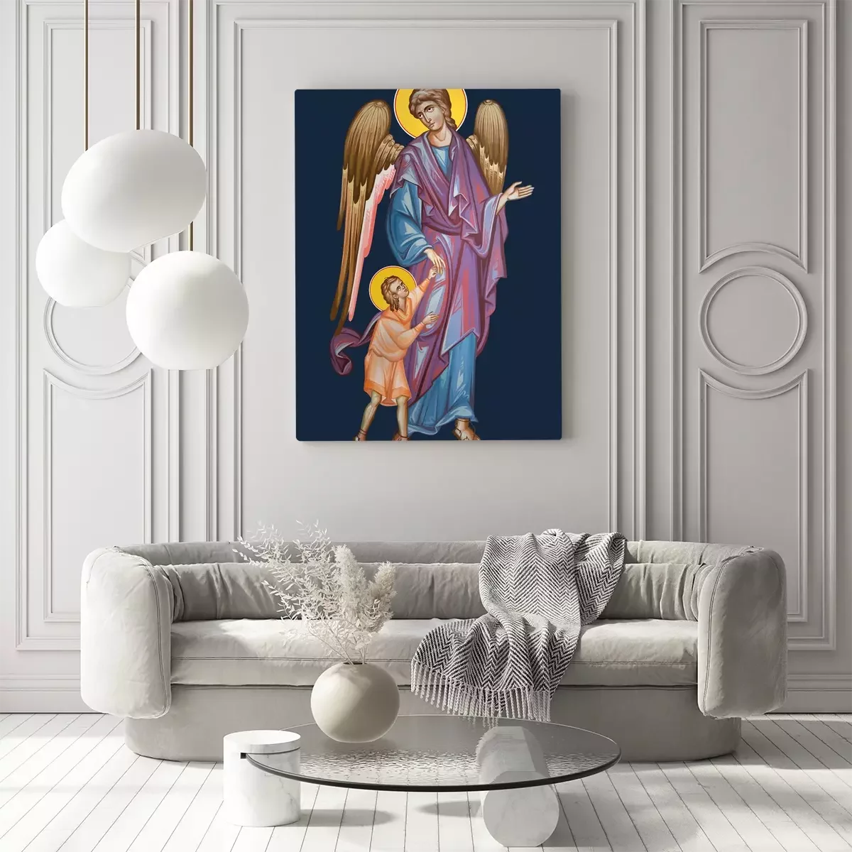 Tableau  Ange gardien pour baptême et peinture de style byzantin