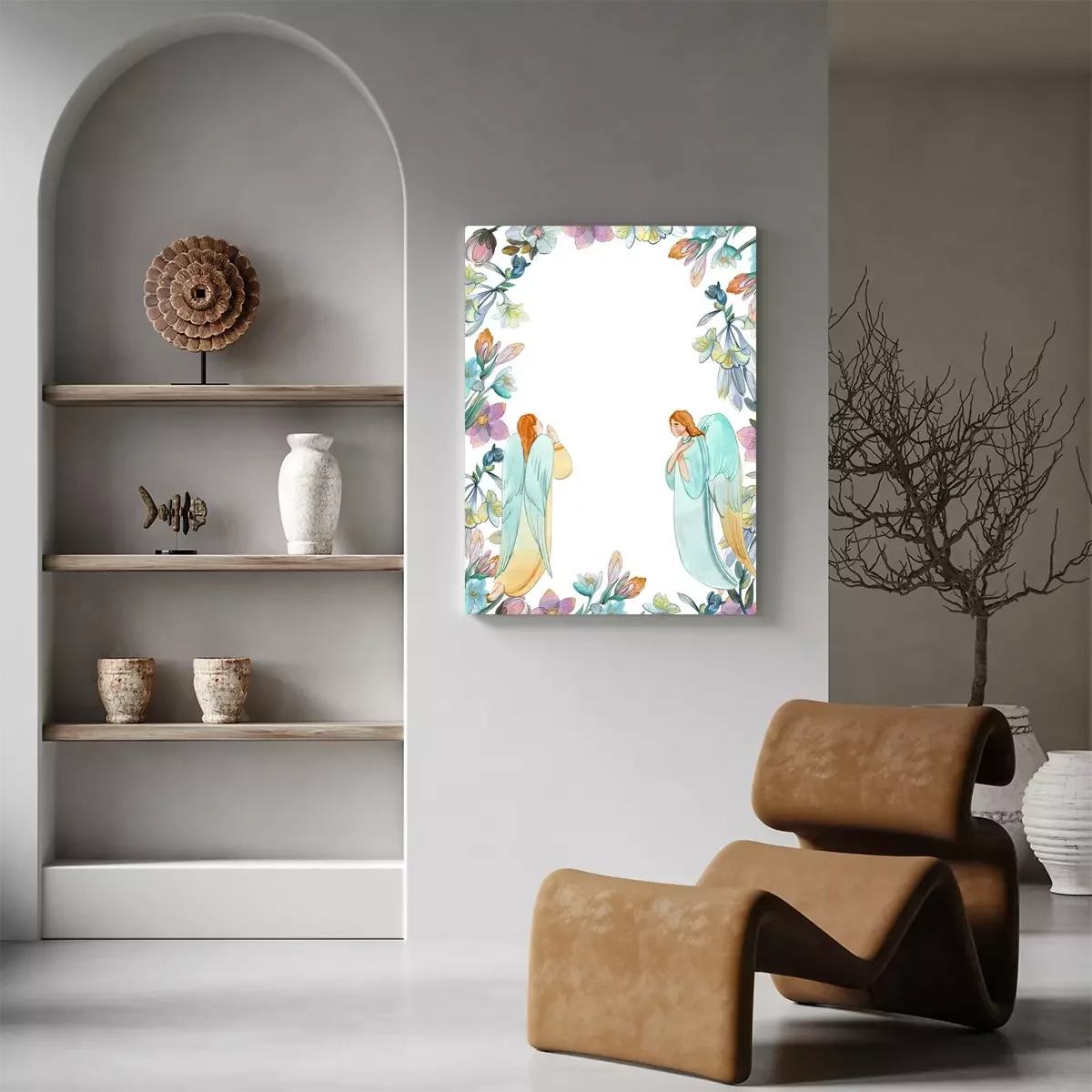 Tableau : Anges aquarellés pendant la prière