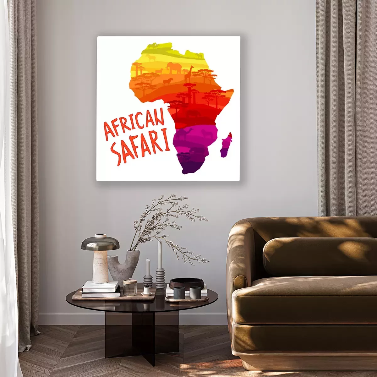 Tableau : Animaux africains silhouettes dans le coucher du soleil