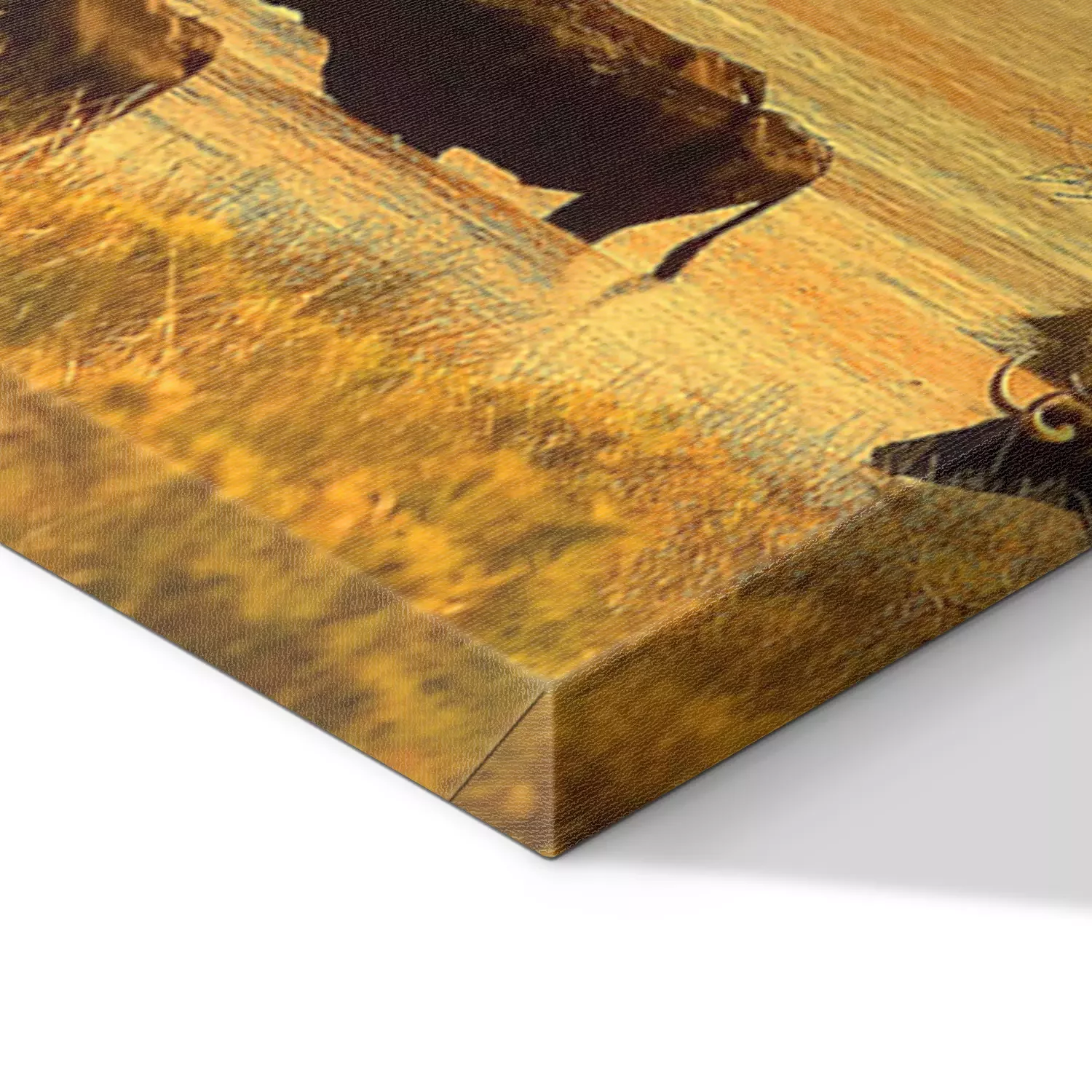 L'impression est réalisée sur une toile de haute qualité tendue sur un châssis. Puisque les bords latéraux de l’image sont également imprimés, il n'est pas nécessaire d'opter pour un cadre supplémentaire. Nous recommandons également les solutions composées de plusieurs images permettant de profiter d’une composition harmonieuse.