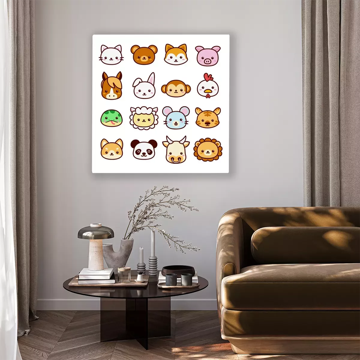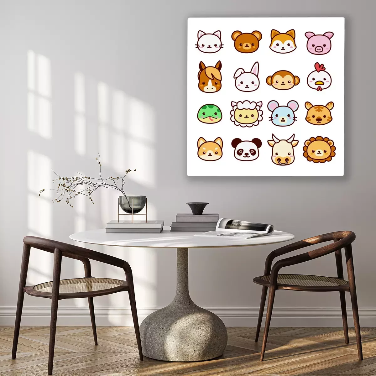 Tableau : Animaux Kawaii et leurs visages