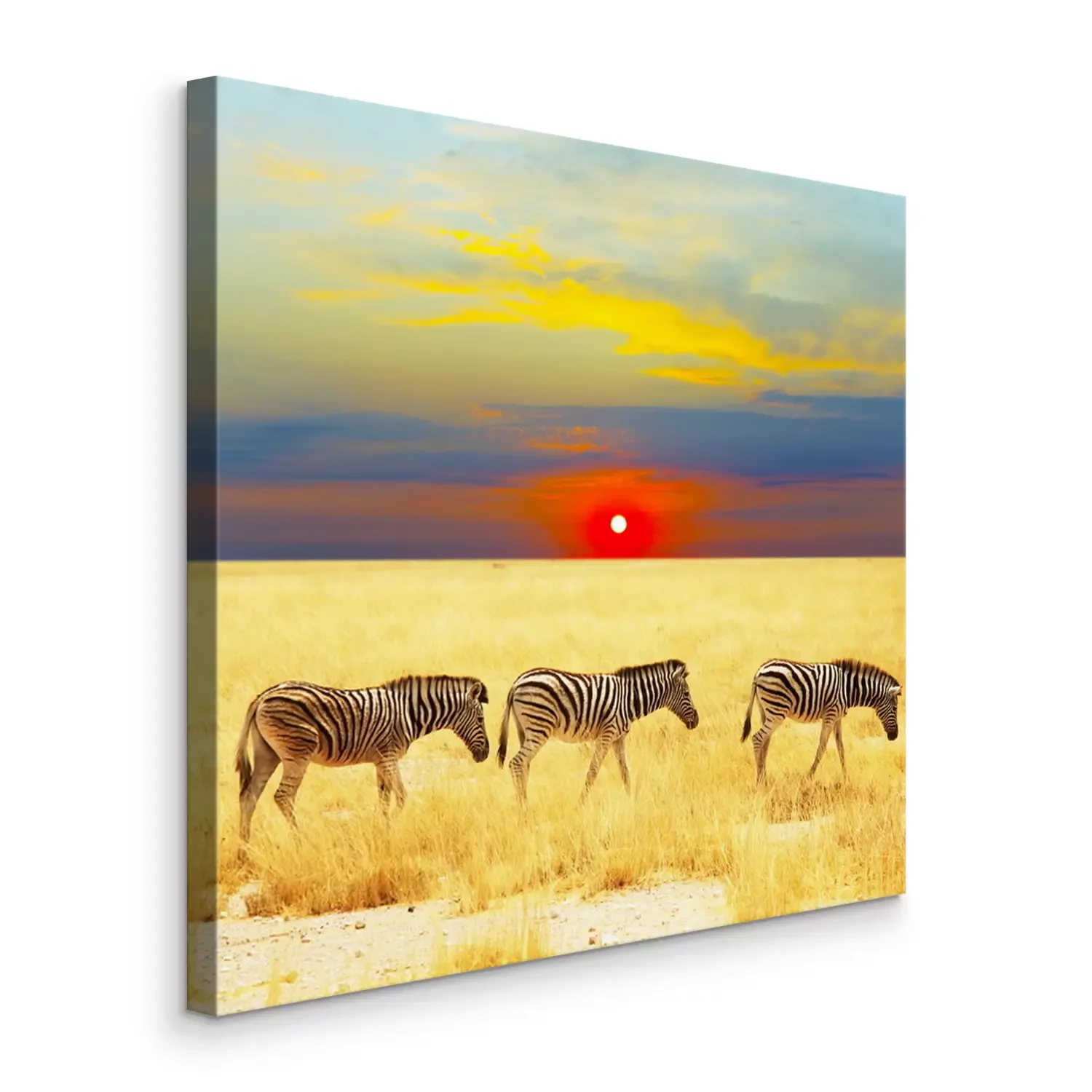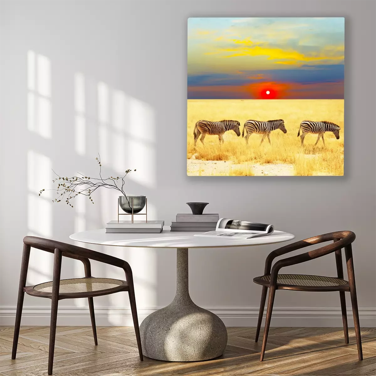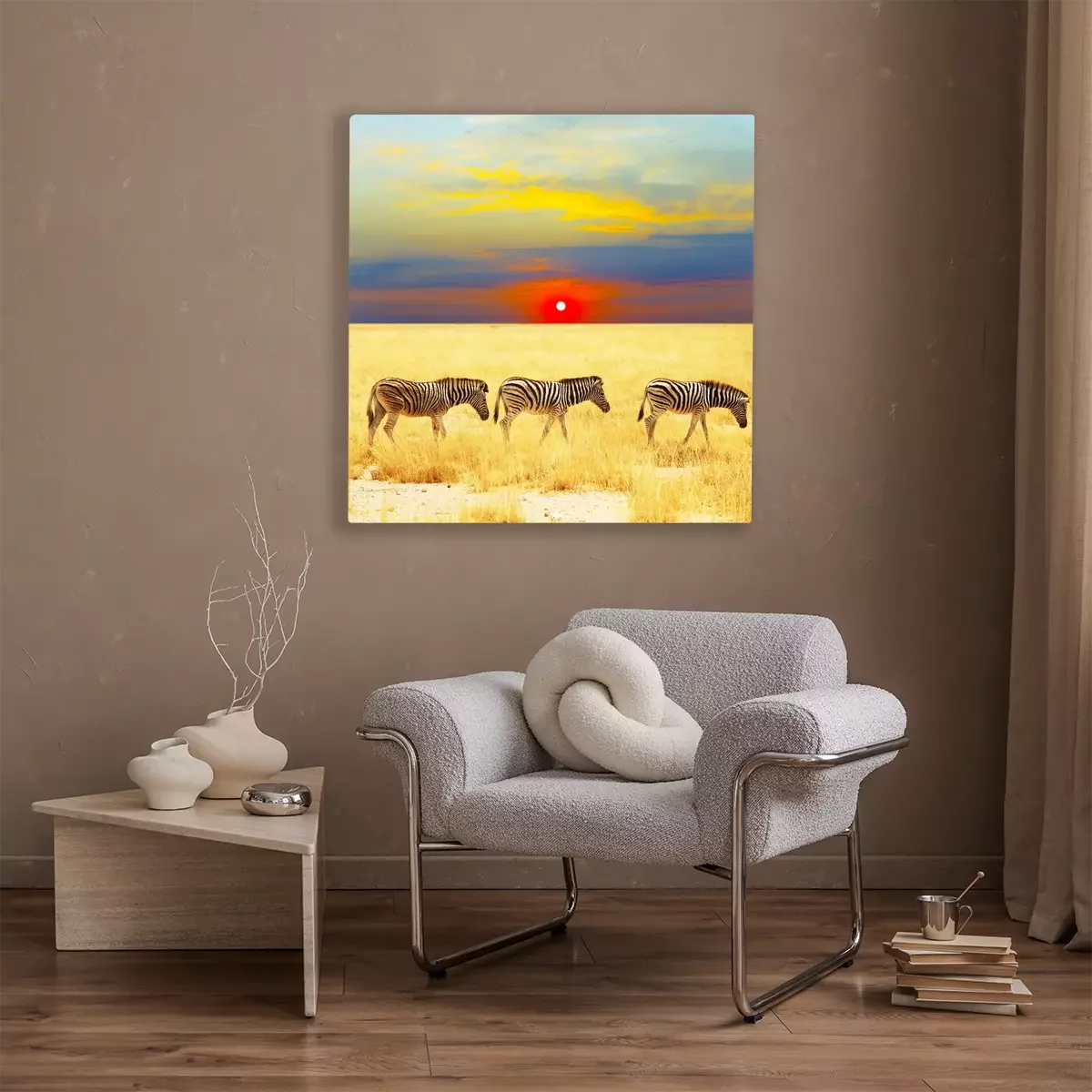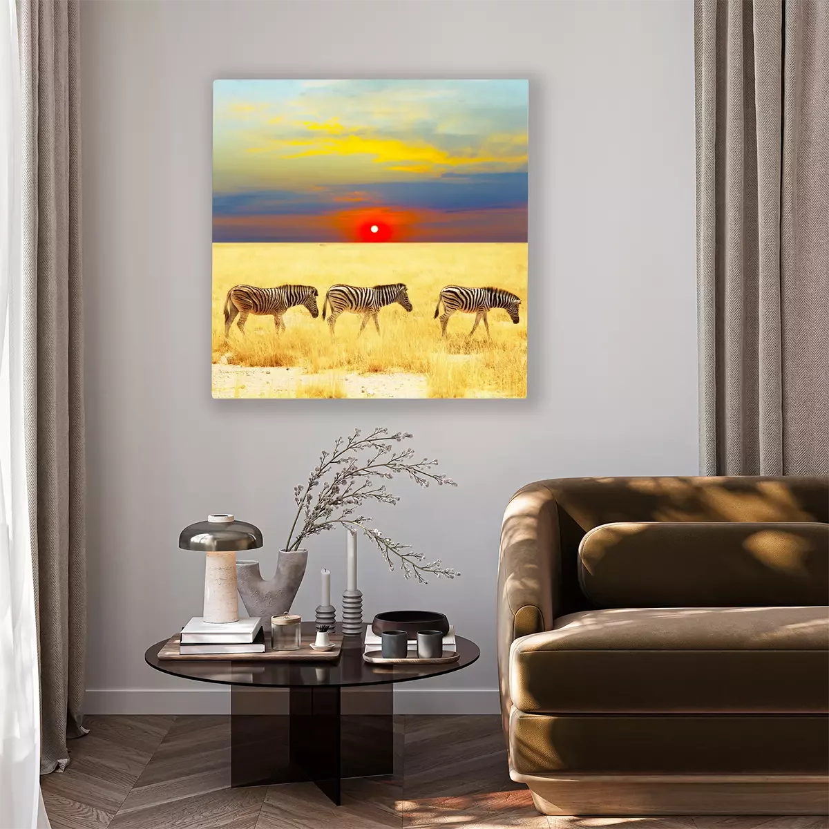 Tableau  Animaux noirs et blancs et coucher de soleil