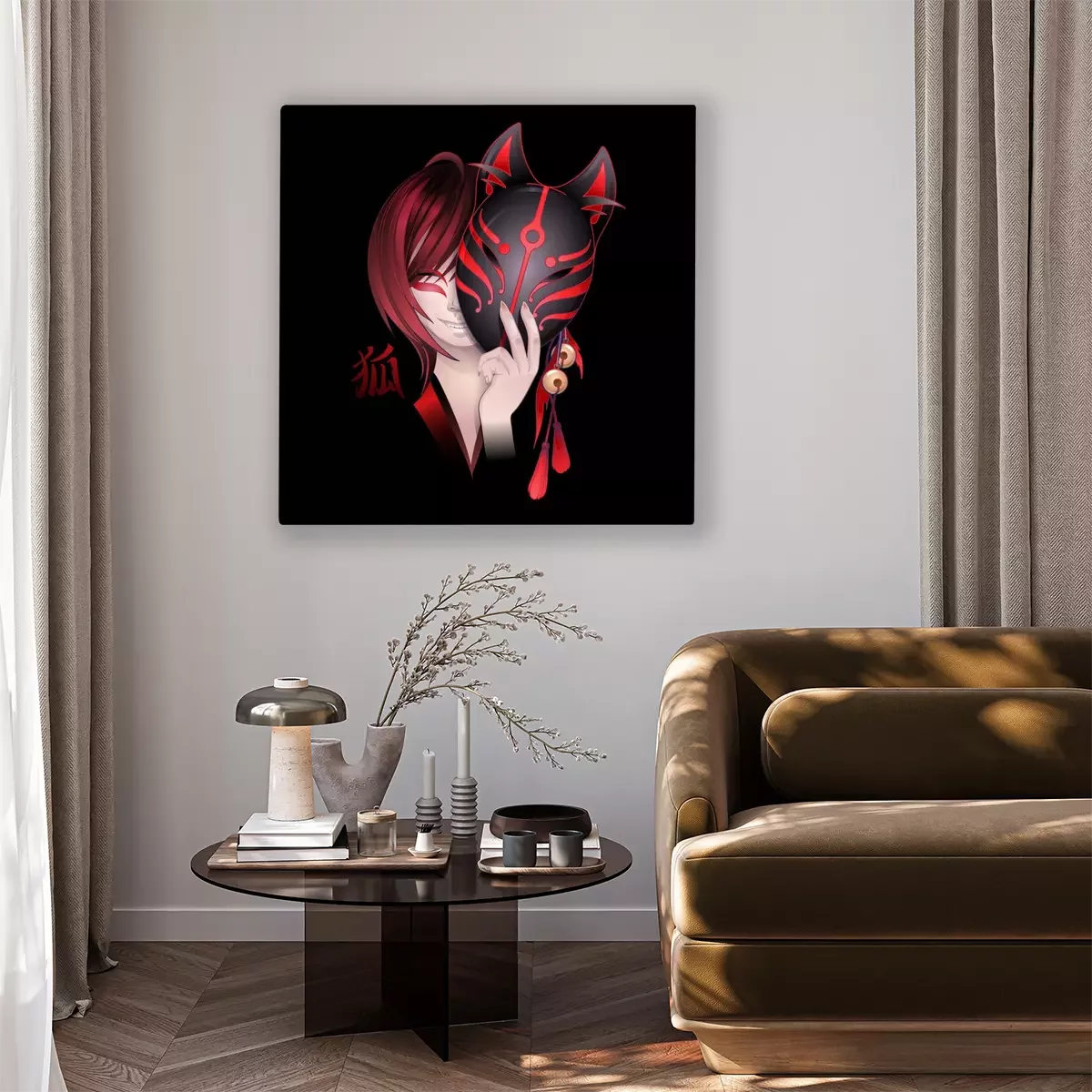 Tableau : Anime avec une fille portant un masque