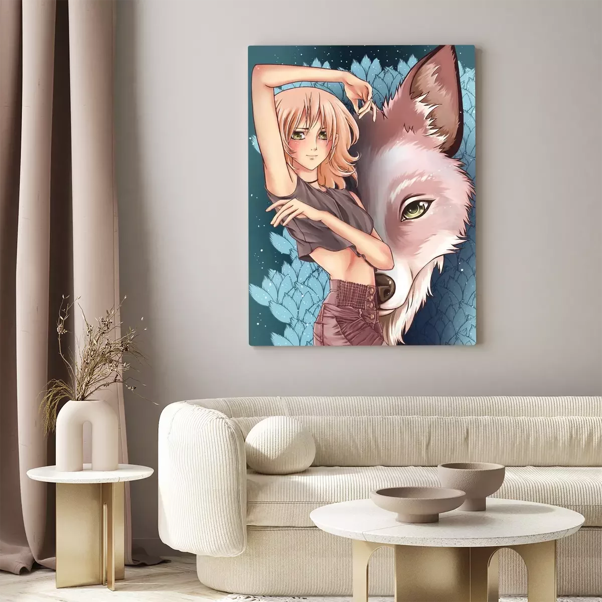 Tableau  Anime girl et un loup