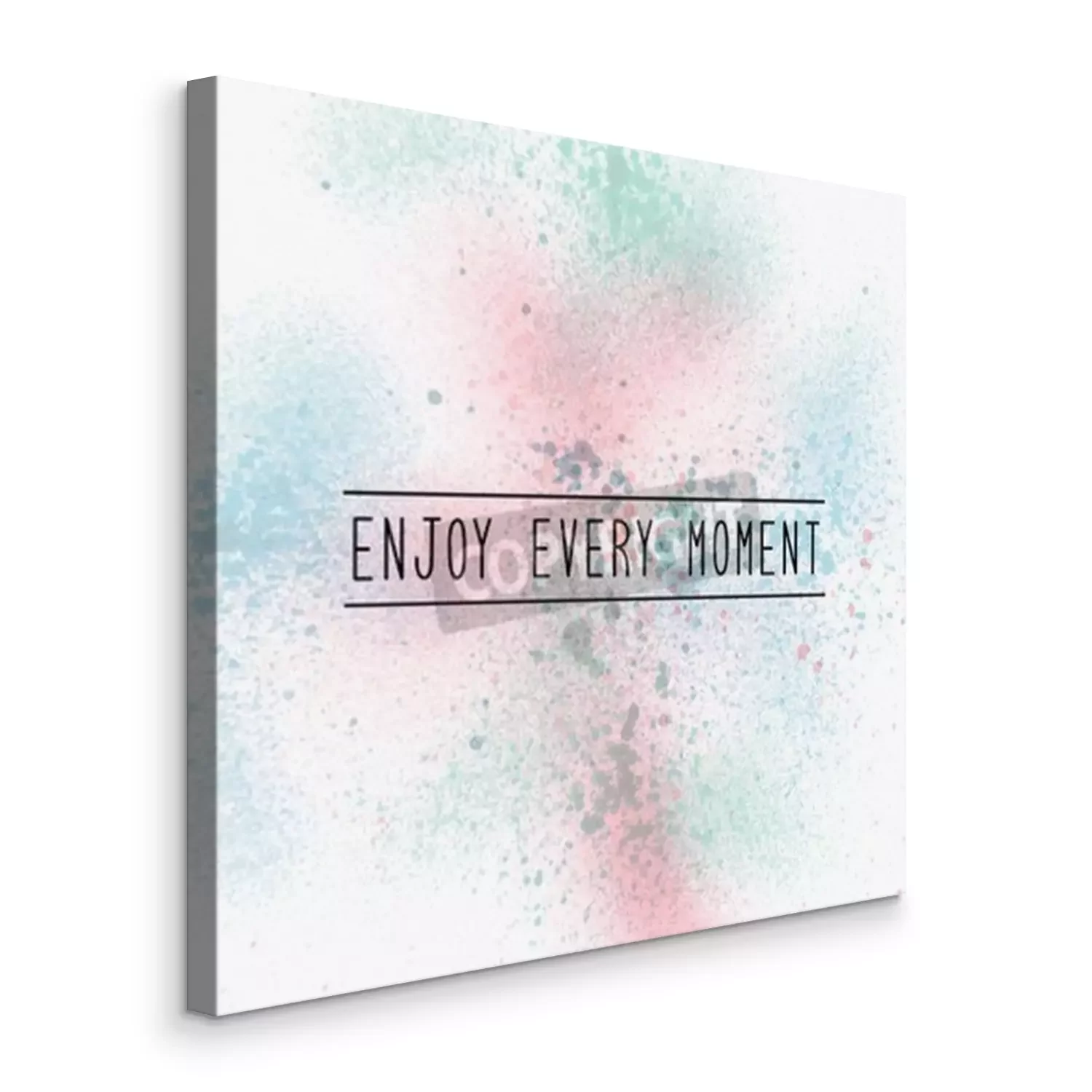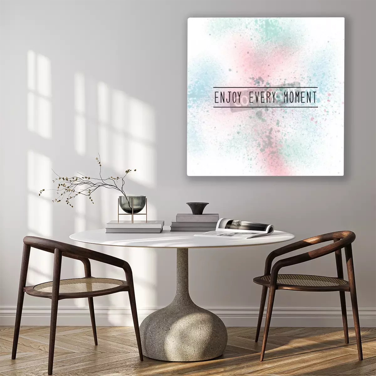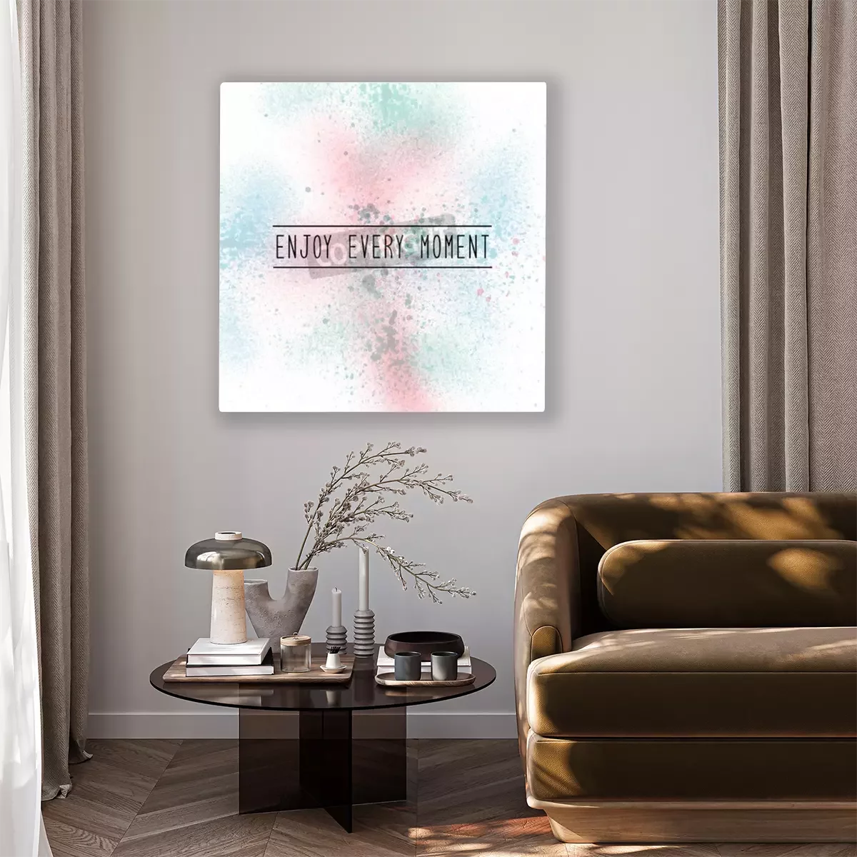 Tableau : Apprécie chaque moment. Citation inspirée sur le fond de peinture de pulvérisation. Tons pastel.