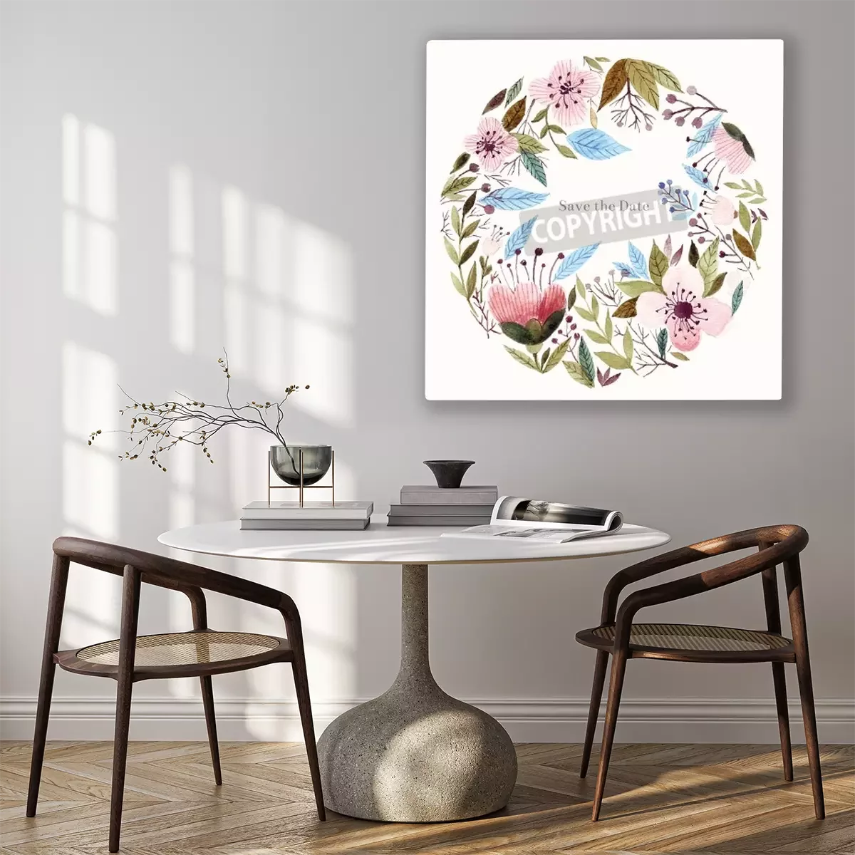 Tableau  Aquarelle arrière-plan floral. Carte de fête, invitation.