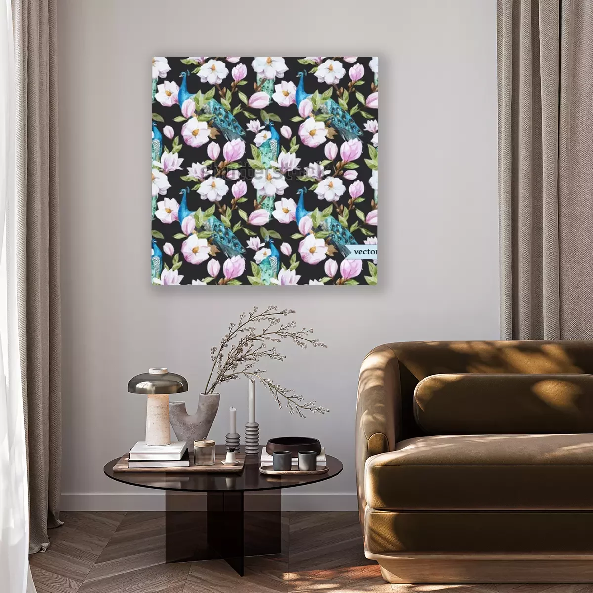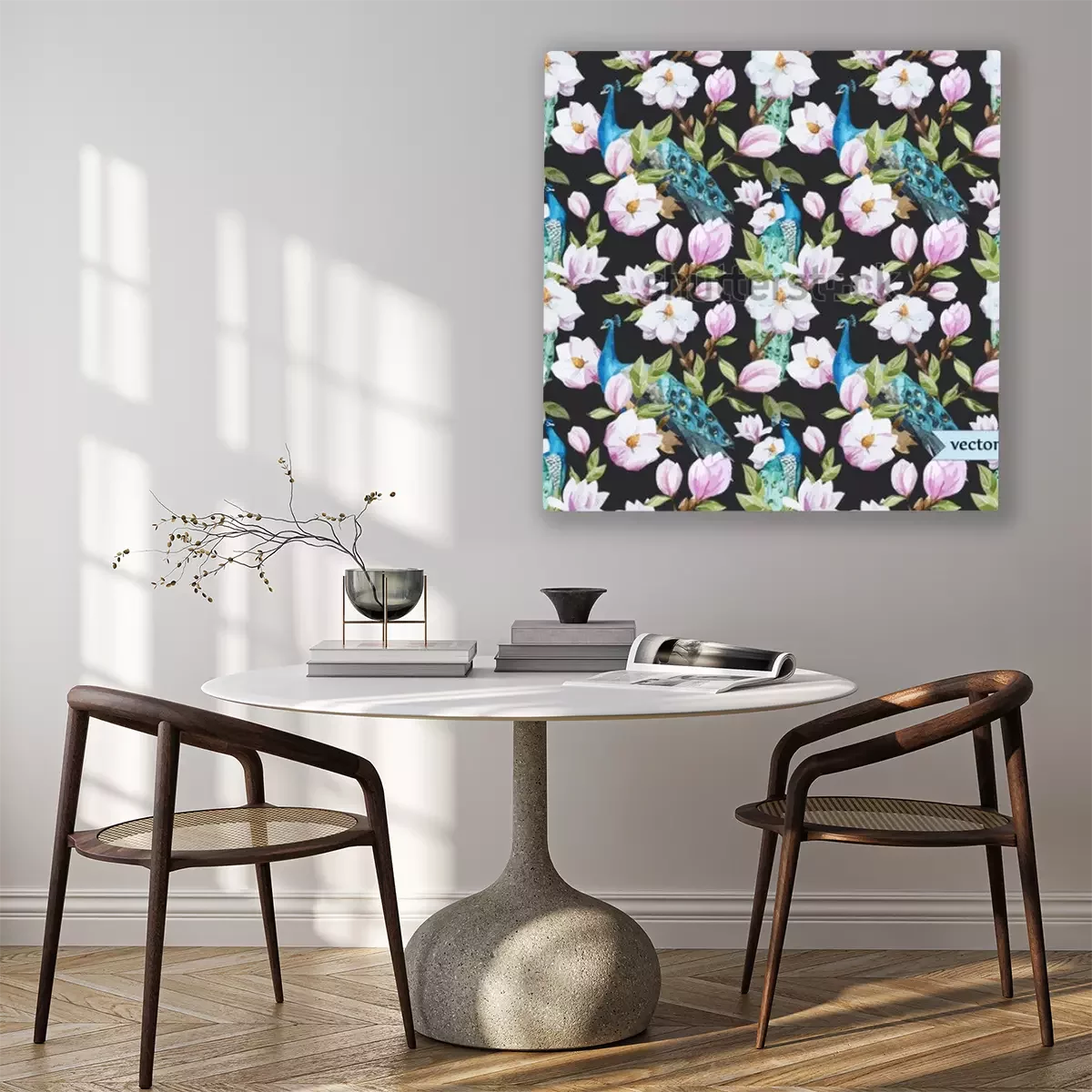 Tableau  Aquarelle, magnolia, fleur, motif paon