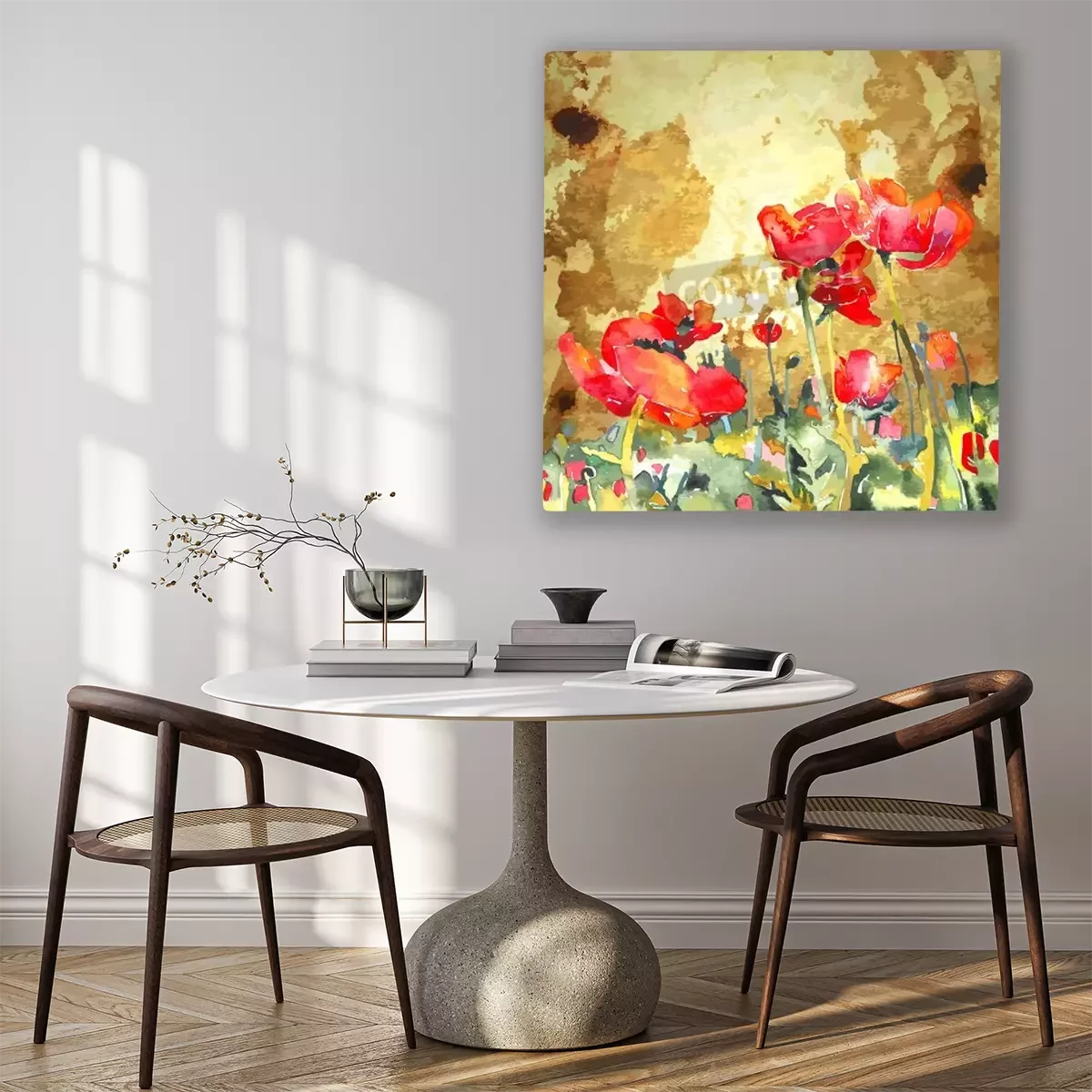 Tableau  Aquarelle originale de fleur de pavot en fond d'or