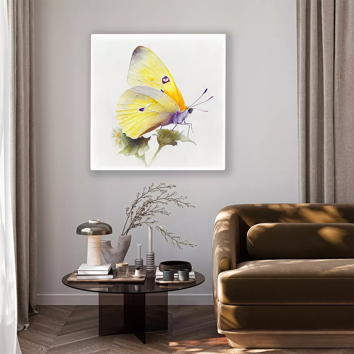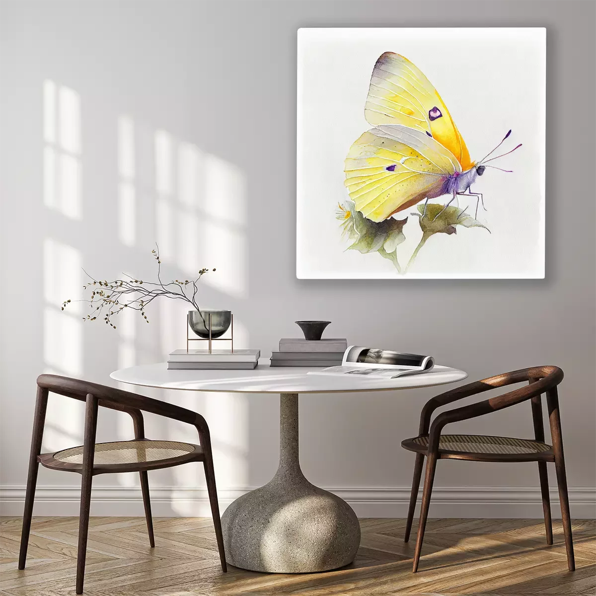 Tableau  Aquarelle représentant un papillon jaune sur fond blanc