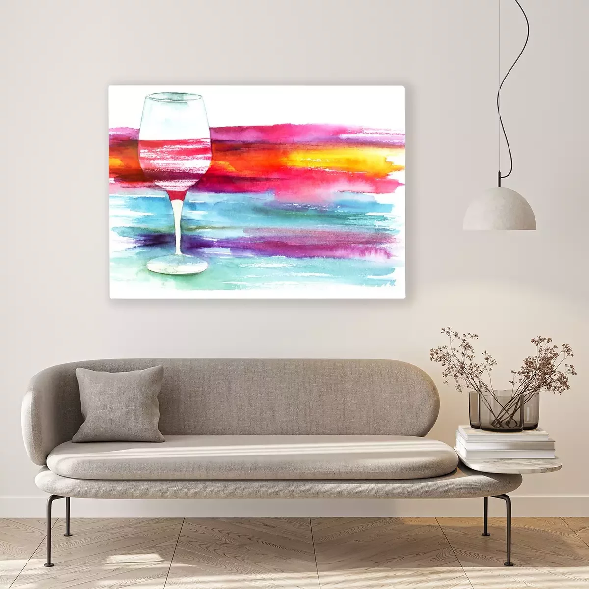 Tableau  Aquarelle, verre, rouges, vin, peint, texture, copyspace