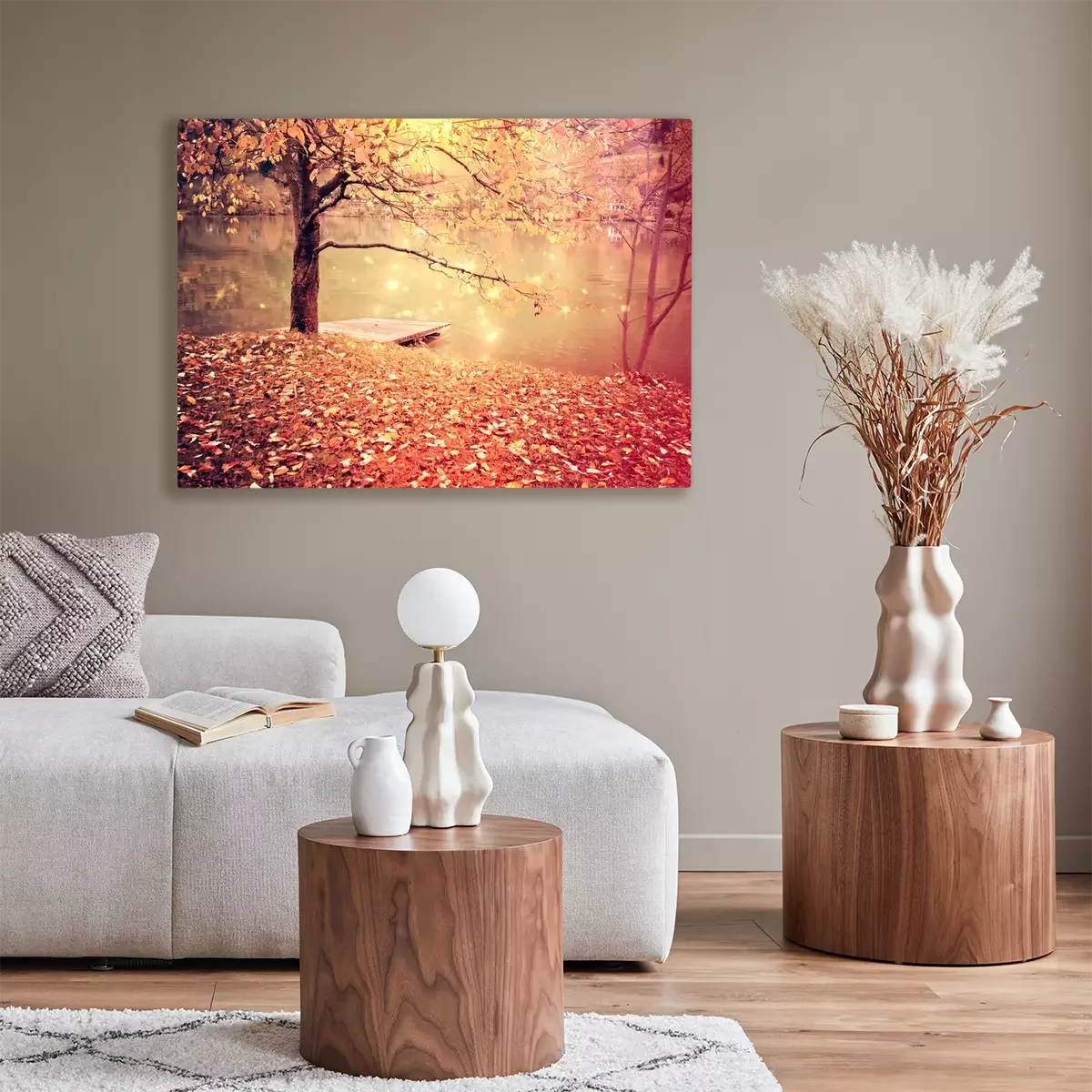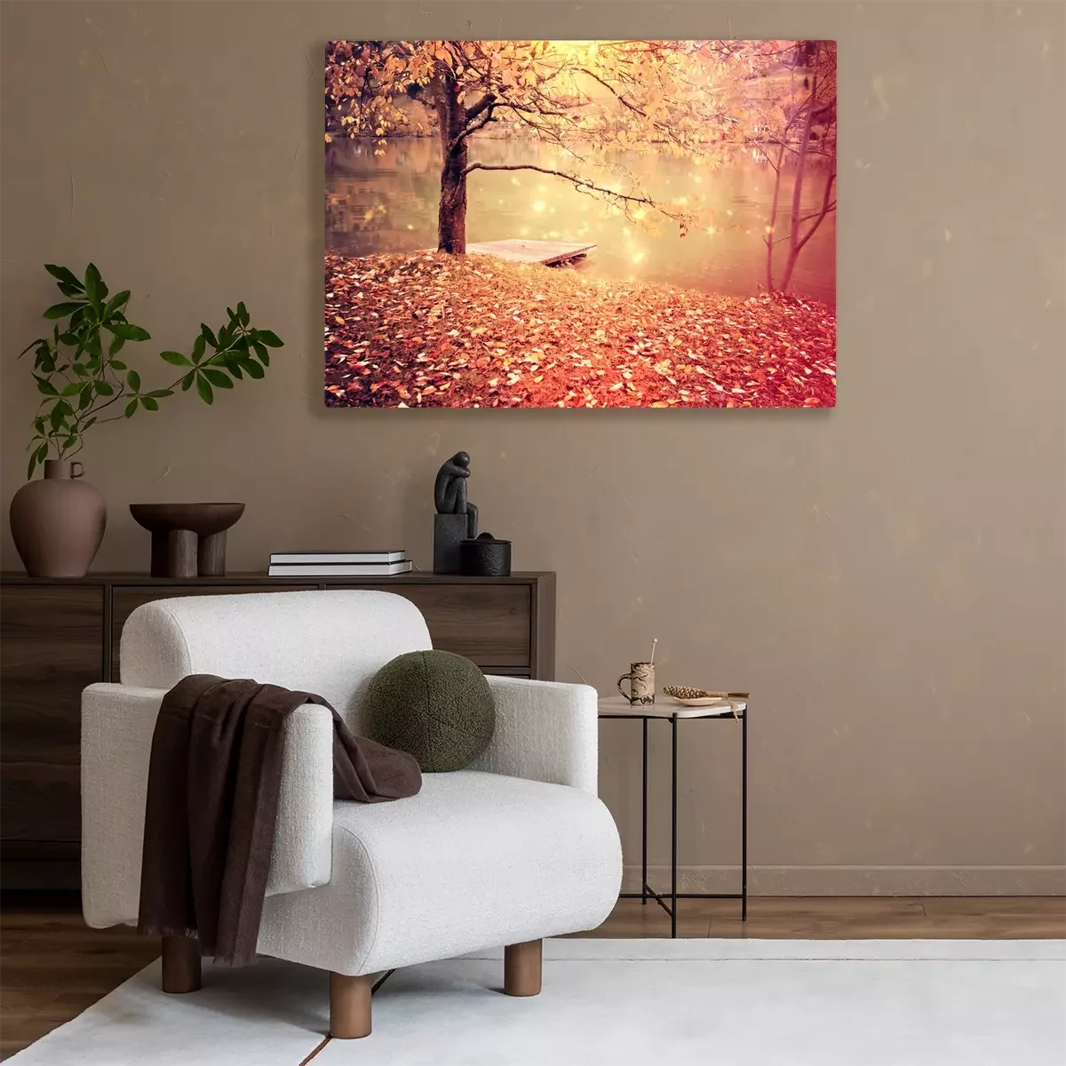 Tableau : Arbre d'automne au bord du lac
