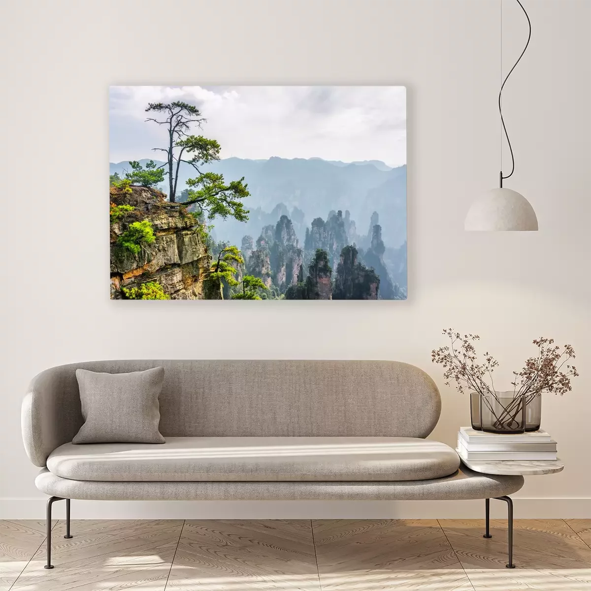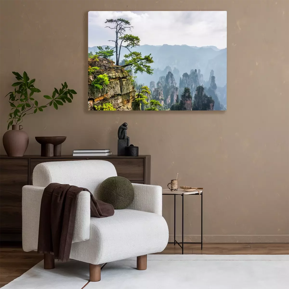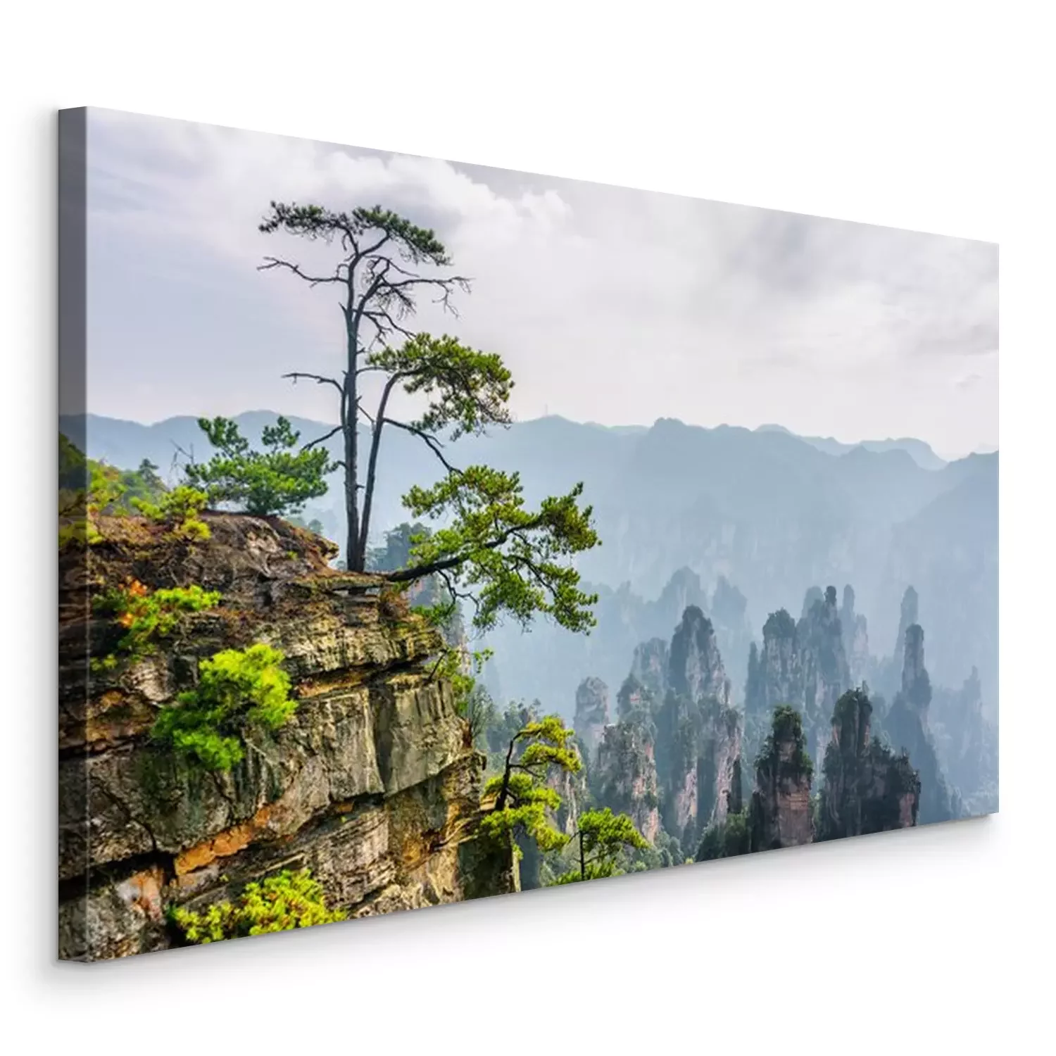 Tableau : Arbre vert poussant au sommet d’un rocher