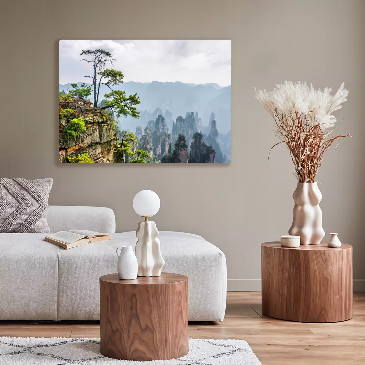 Tableau  Arbre vert poussant au sommet d’un rocher