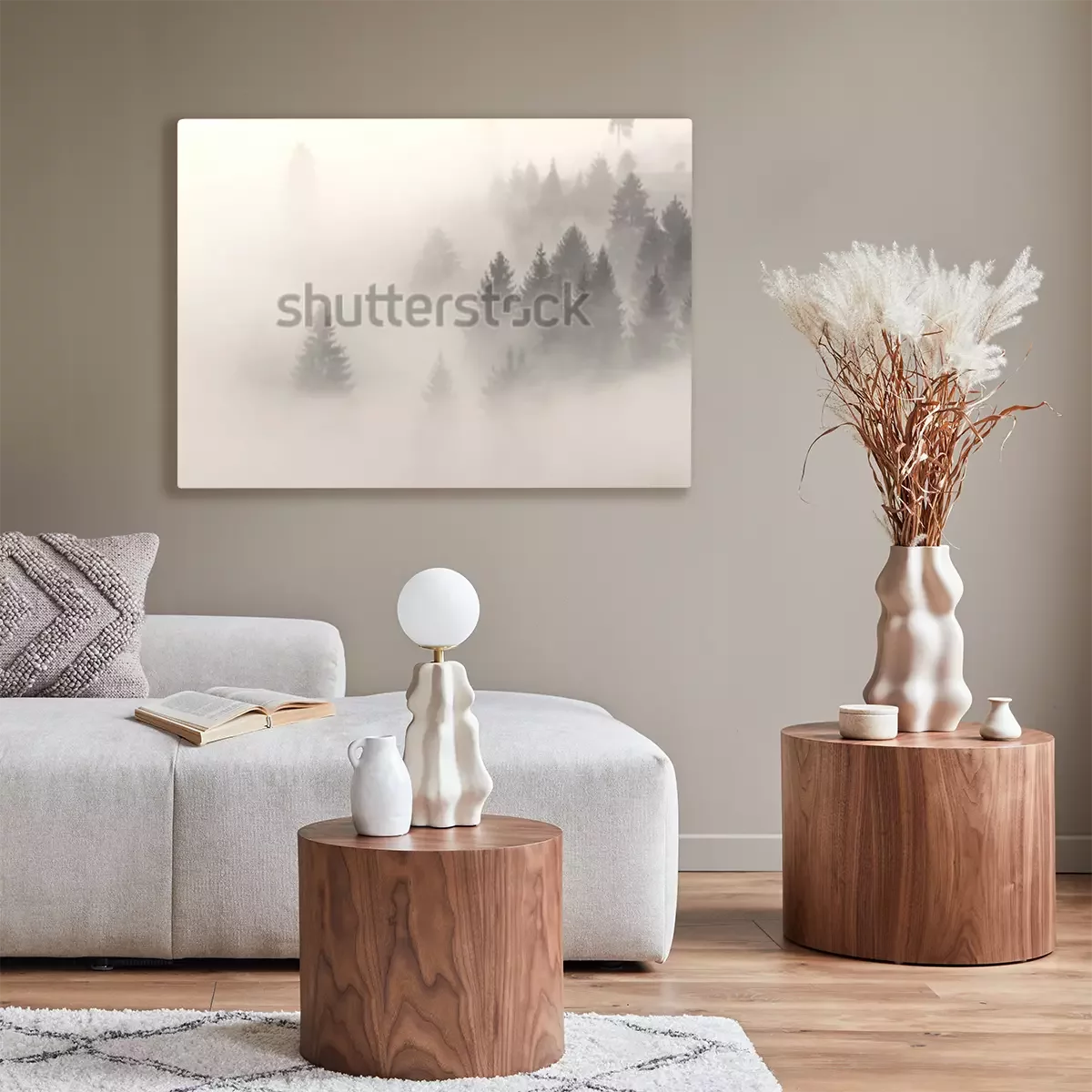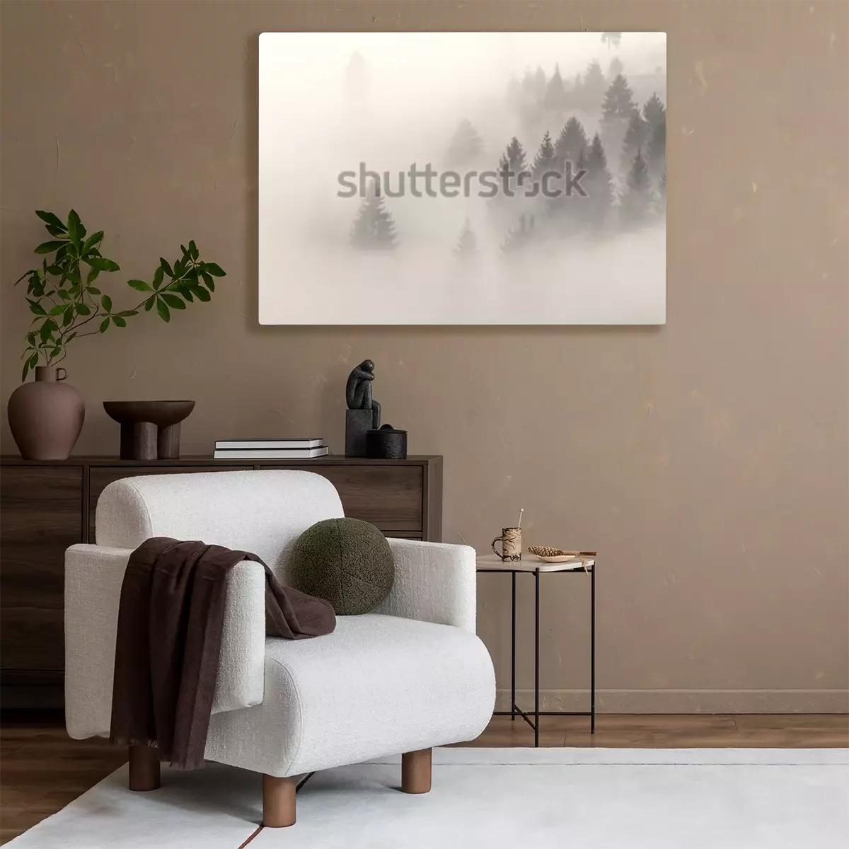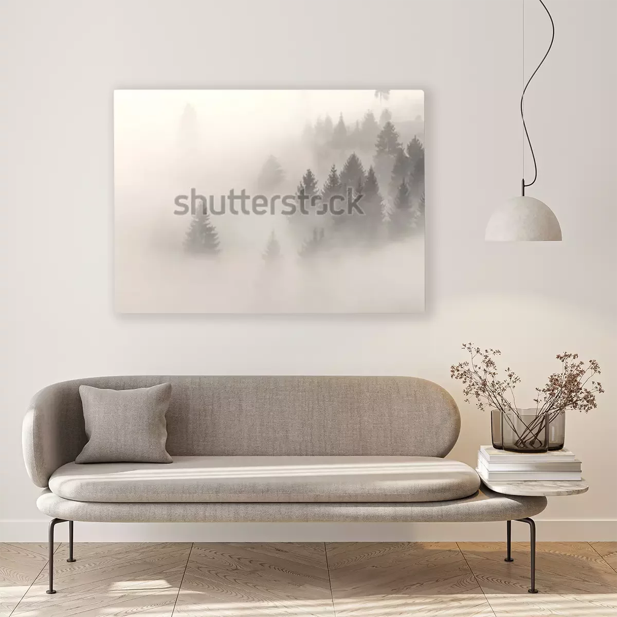 Tableau  Arbres dans le brouillard sur fond de soleil