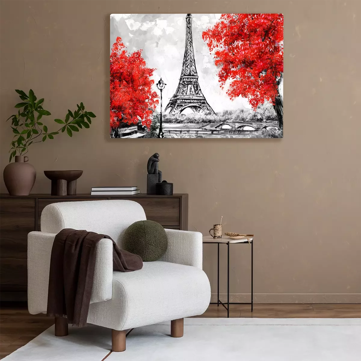 La Tour Eiffel avec des arbres roses dans un style pictural